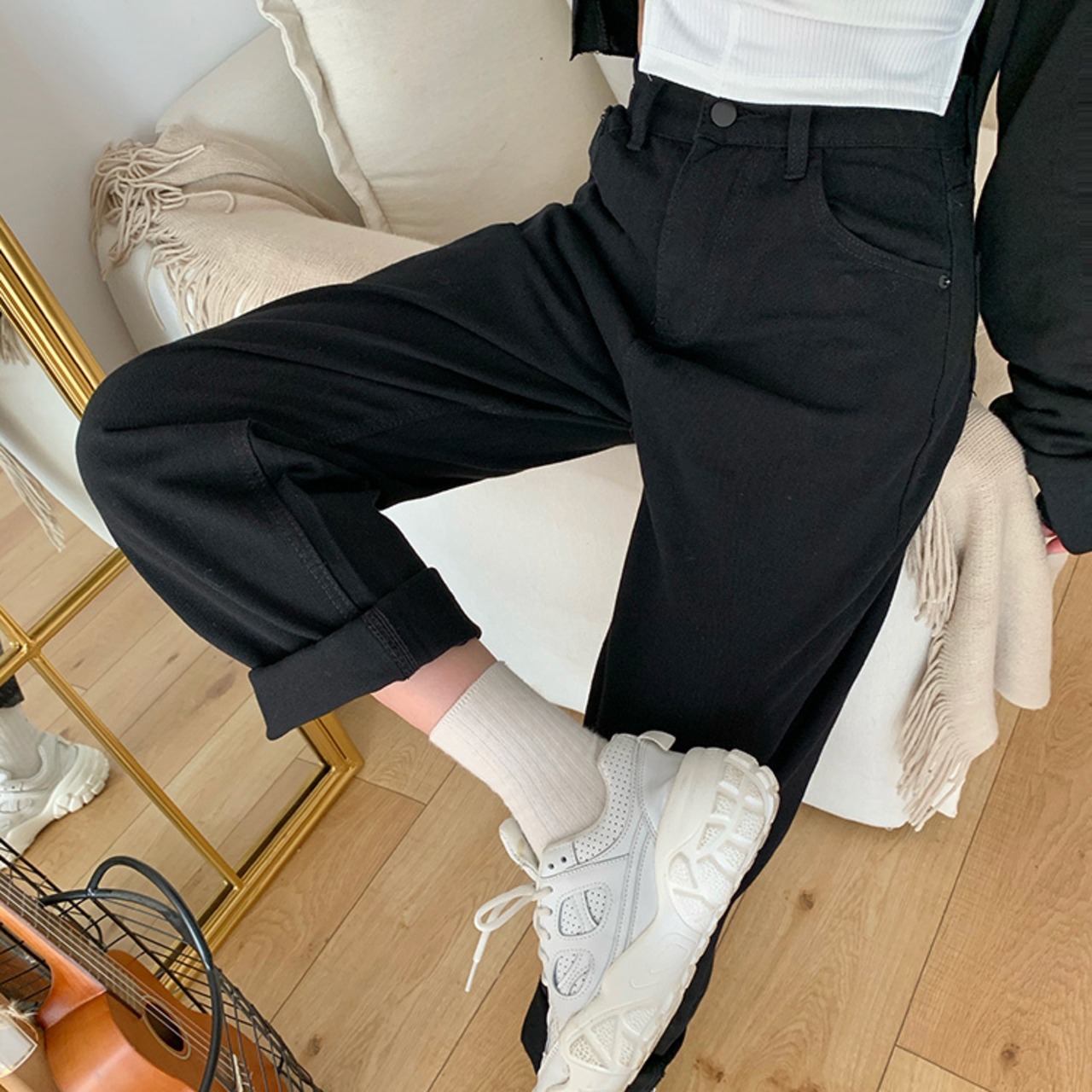 裾をロールアップした着こなしもおすすめです♡