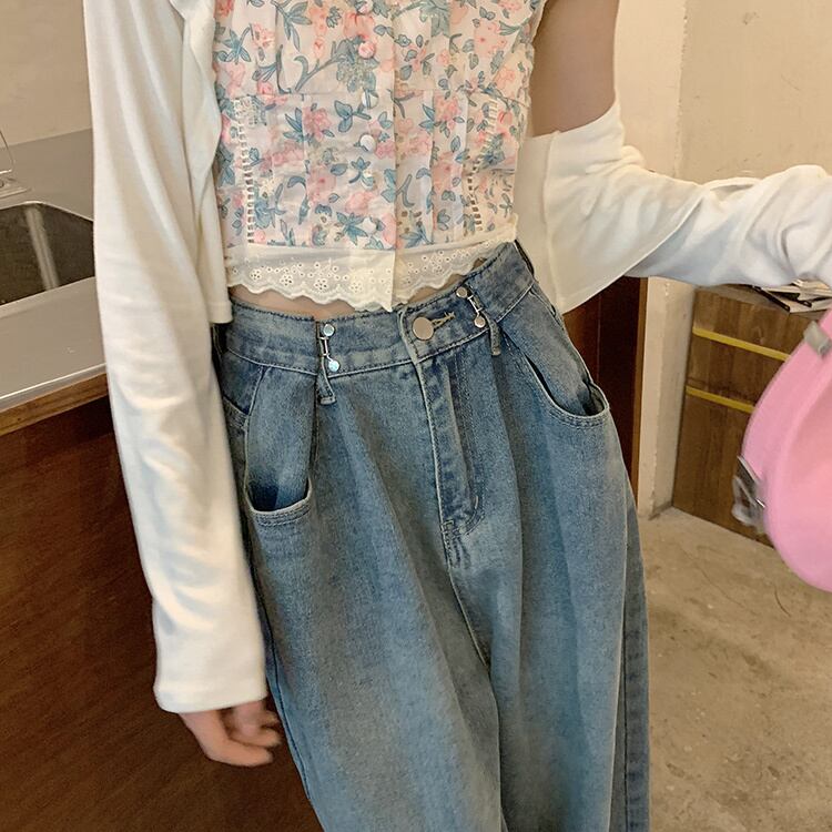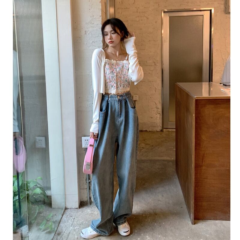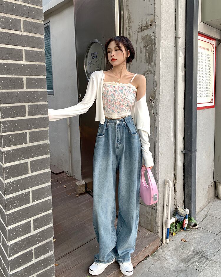 デニムパンツ ロングパンツ ボトム ワイドレッグ ジーパン ハイウエスト ワントーン 無地 シンプル カジュアル 韓国ファッション S-L