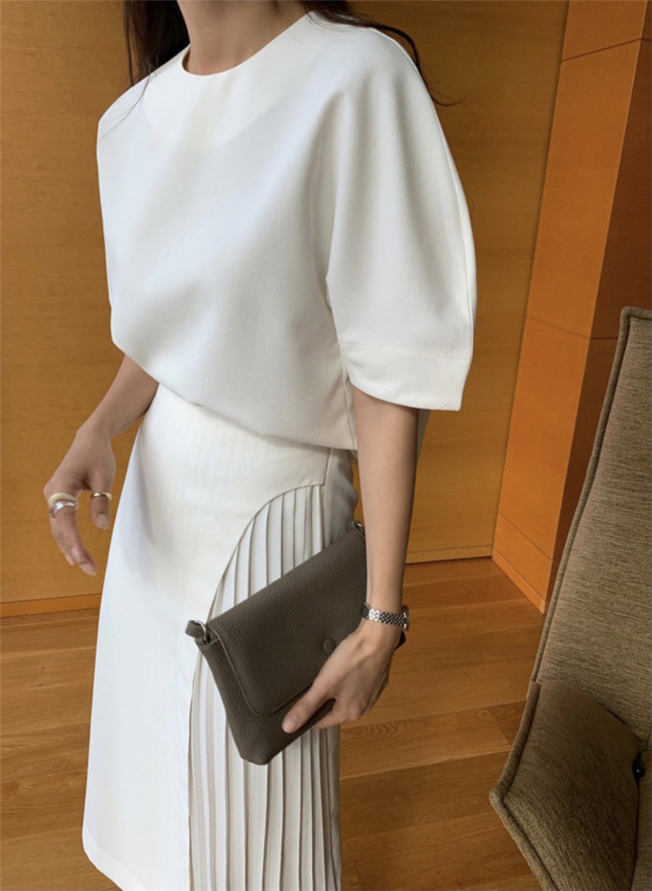 セットアップ 2点セット 半袖 トップス 部分プリーツスカート きれいめ エレガント 上品 裏地付き 大人可愛い 韓国ファッション
