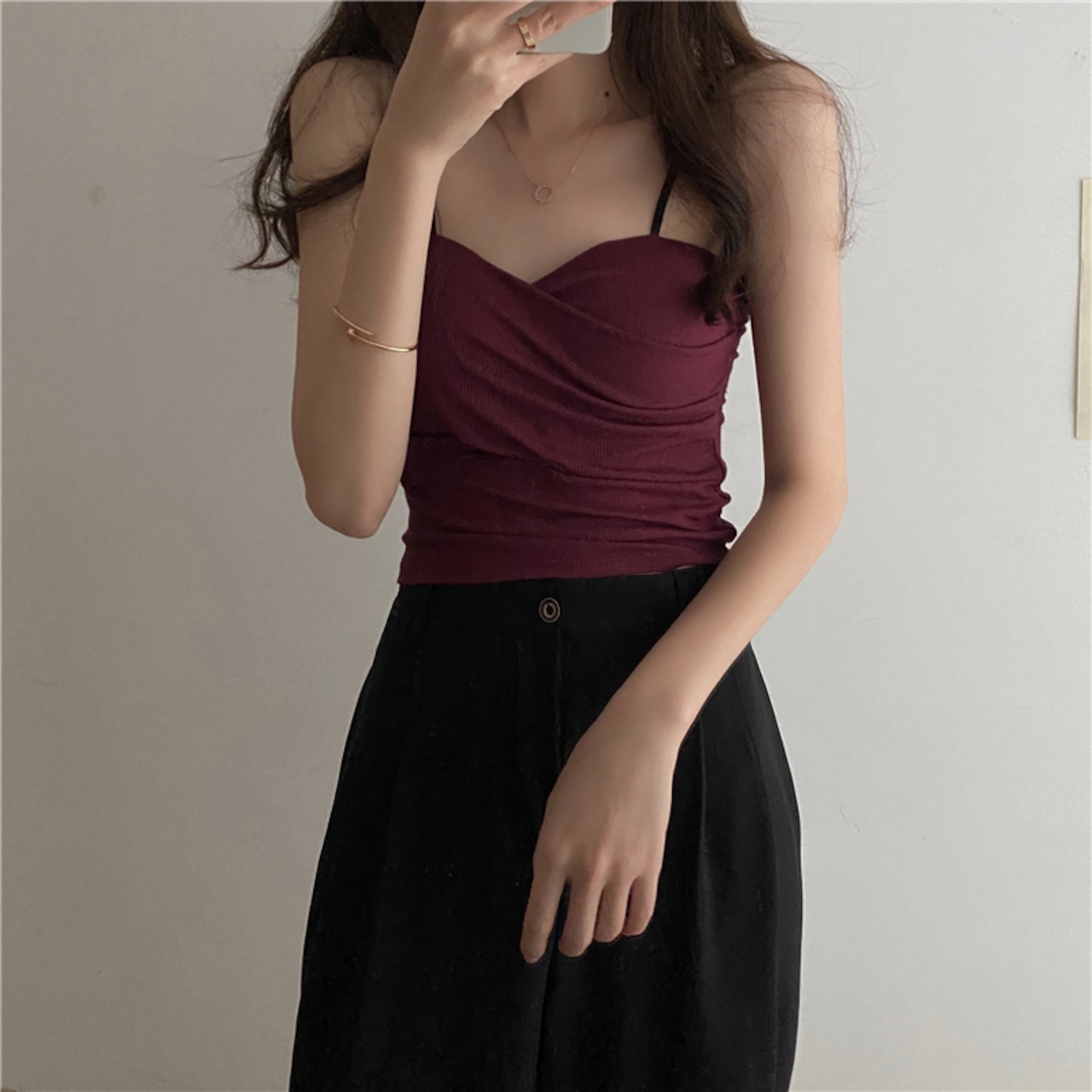 着回し力抜群のシンプルなキャミソール。