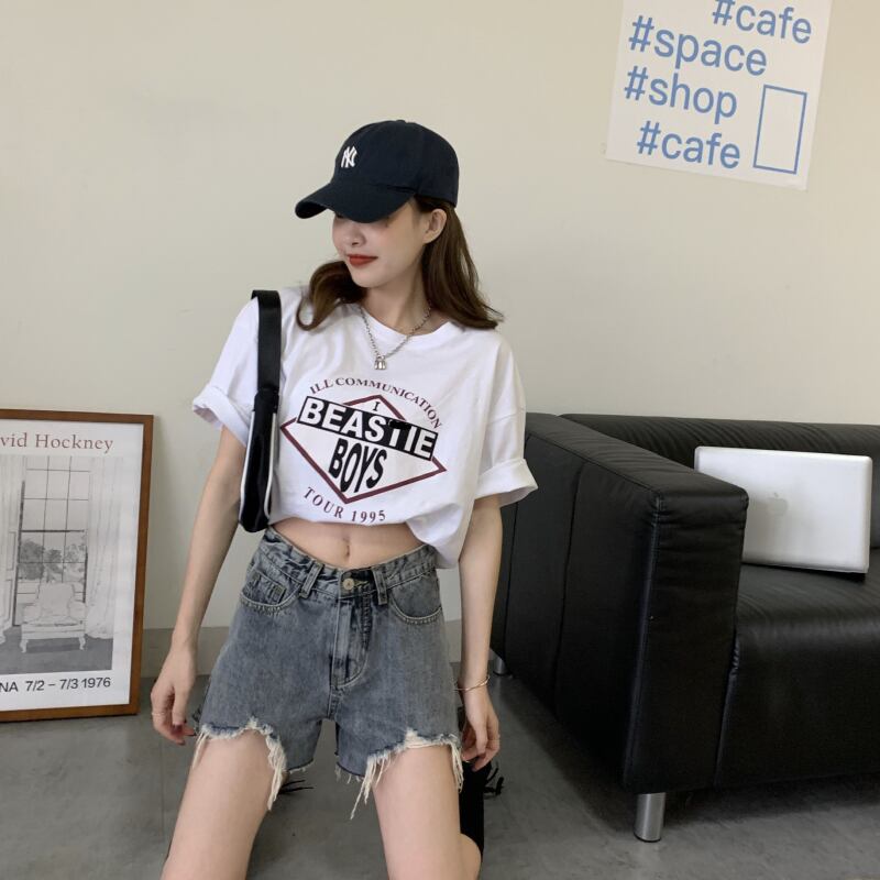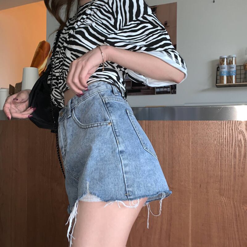 デニムショートパンツ ショートパンツ ホットパンツ カットオフデニム ダメージ ボトム ハイウエスト ワントーン 無地 シンプル カジュアル 韓国ファッション 4color S-XL
