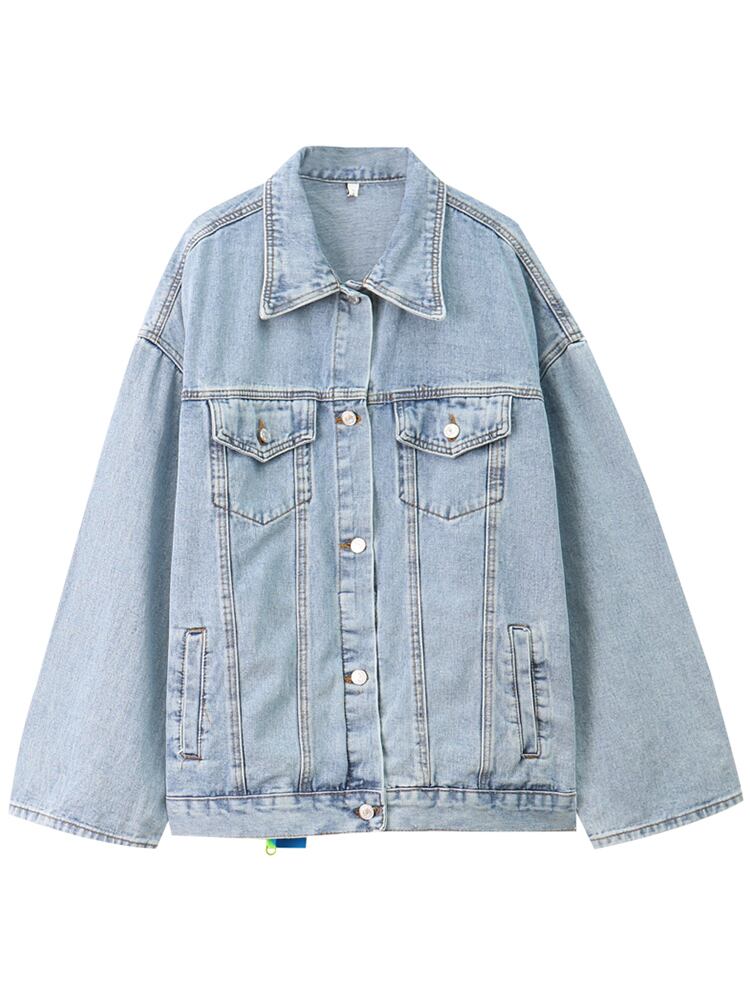 デニムジャケット ジャケット アウター Gジャン ルーズ オーバーサイズ タグ風 長袖 シンプル カジュアル 韓国ファッション S-XL
