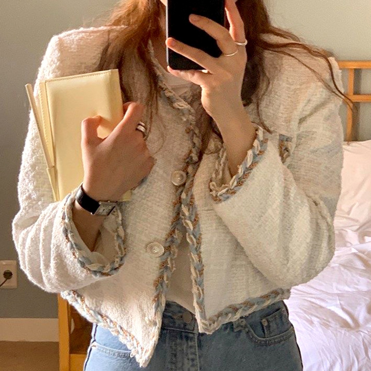 ジャケット アウター ツイード ショート丈 きれいめ 上品 お出かけ 通勤 通学 ラブリー 大人可愛い 韓国ファッション