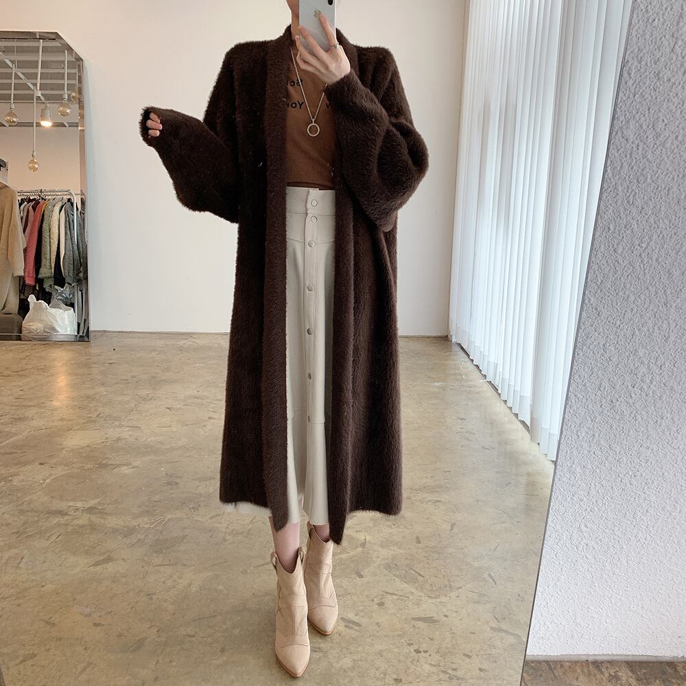 カーディガン トップス ロング丈 きれいめ 上品 お出かけ デート 大人可愛い 韓国ファッション