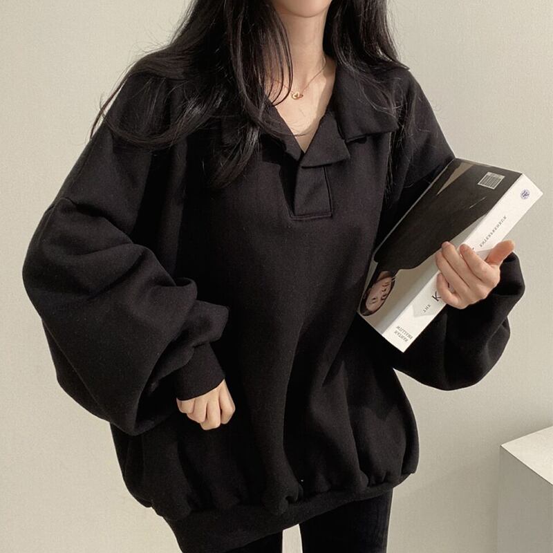 スウェット トップス トレーナー ポロ襟 カジュアル オーバーサイズ デイリー 大人可愛い 韓国ファッション