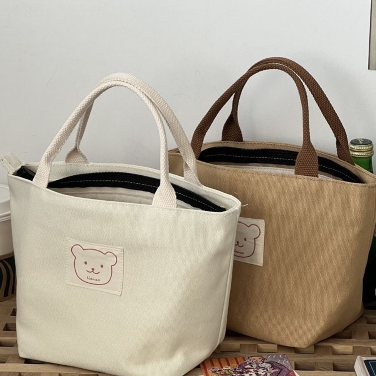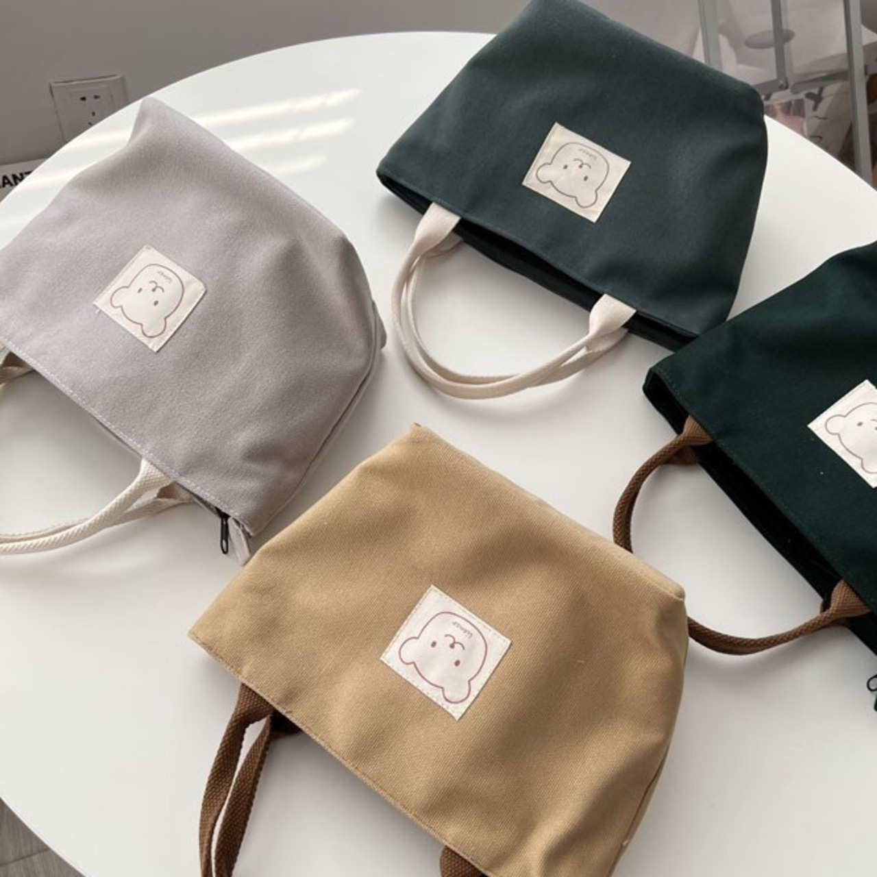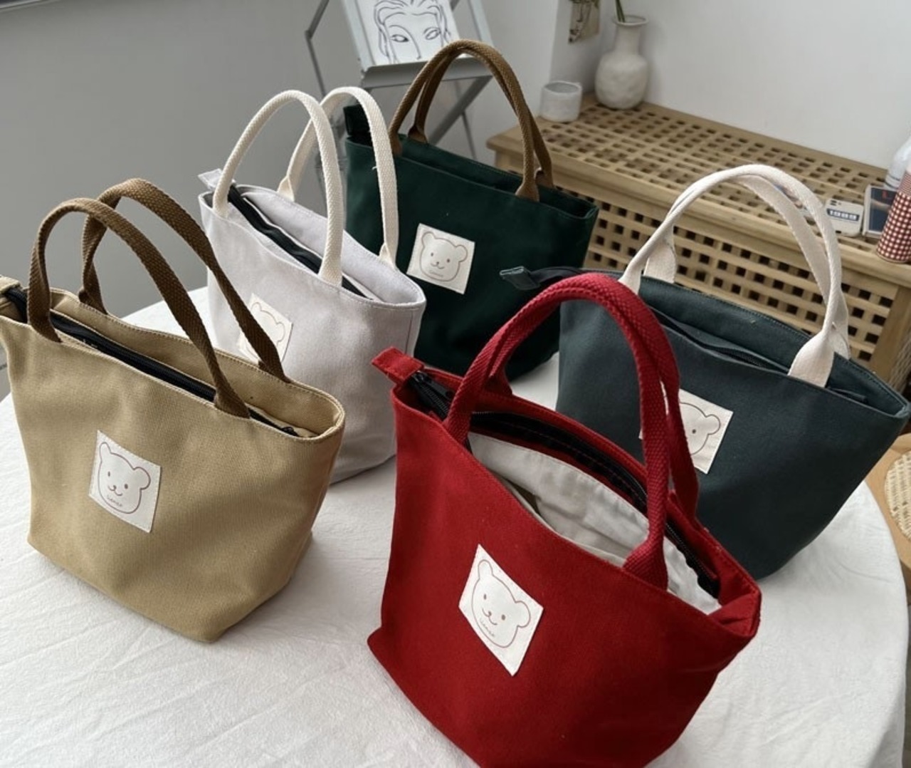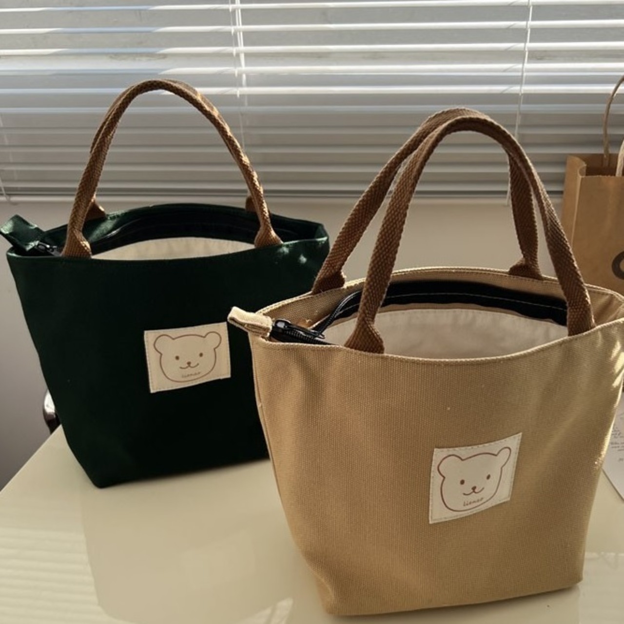 キャンバスバッグ ハンドバッグ 舟形 バケツ型 かばん カバン くまちゃん クマ ベア シンプル カジュアル デイリー 通勤 通学 ランチバッグ レジャー 韓国ファッション 6color