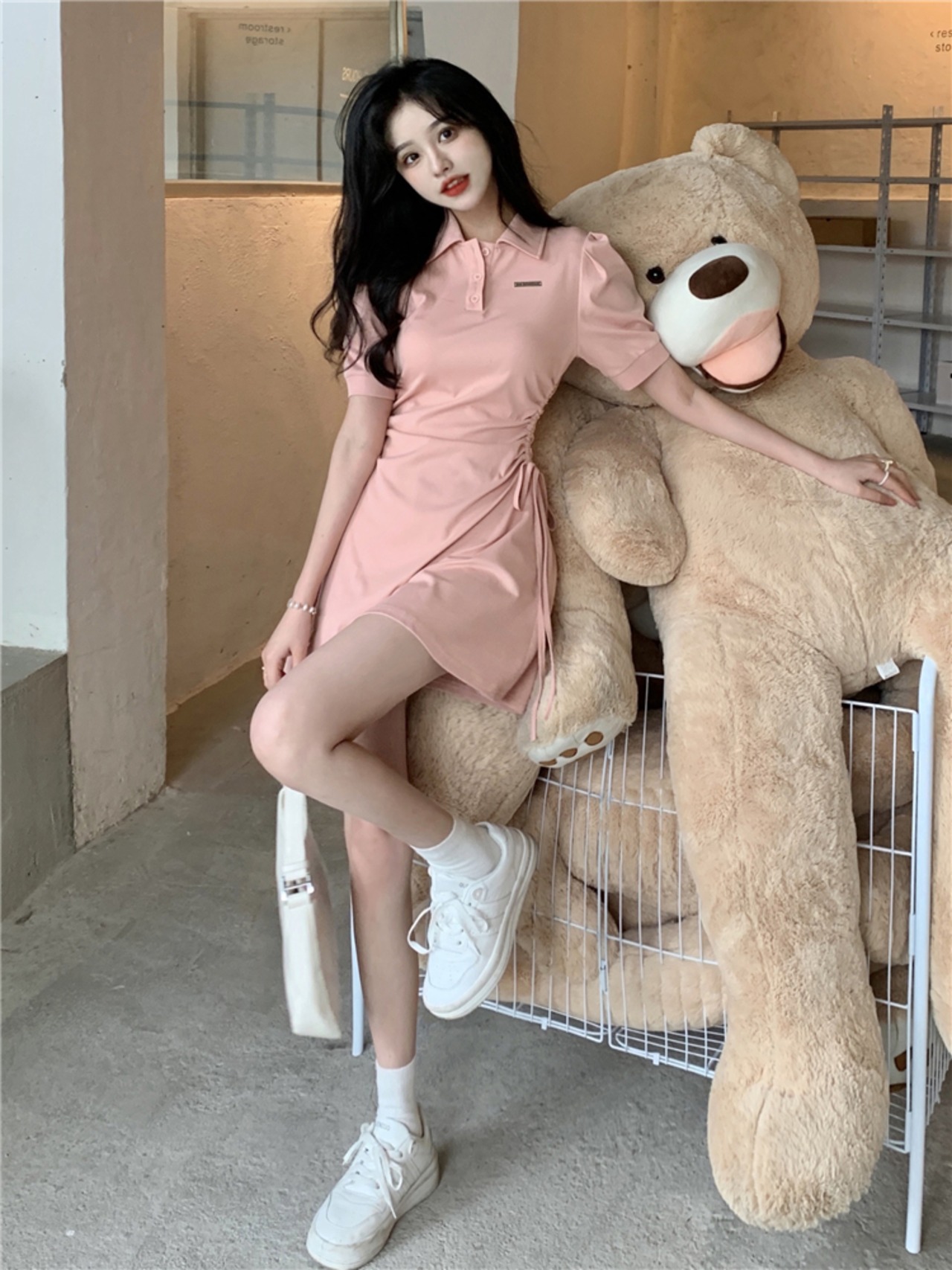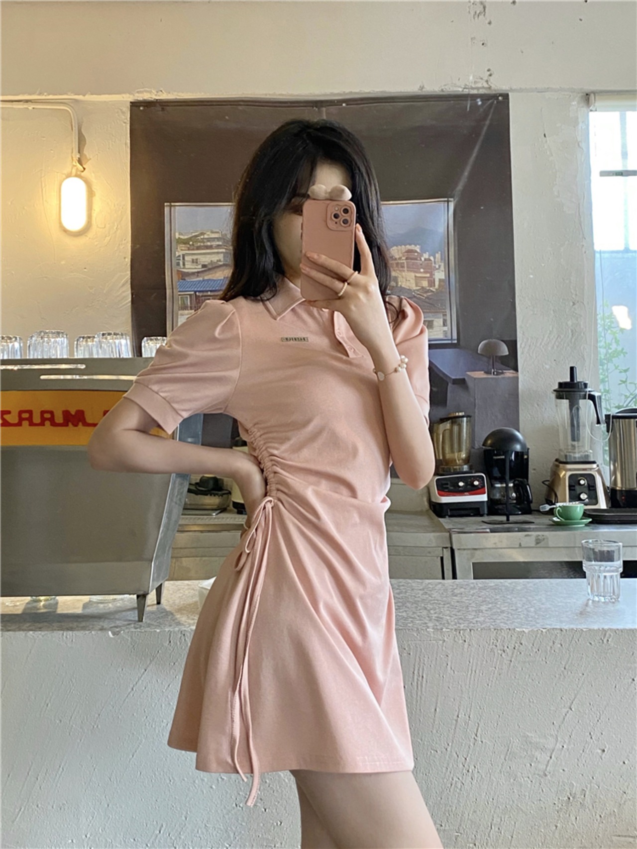 ドロストですっきりとした着こなしが叶うポロワンピ。