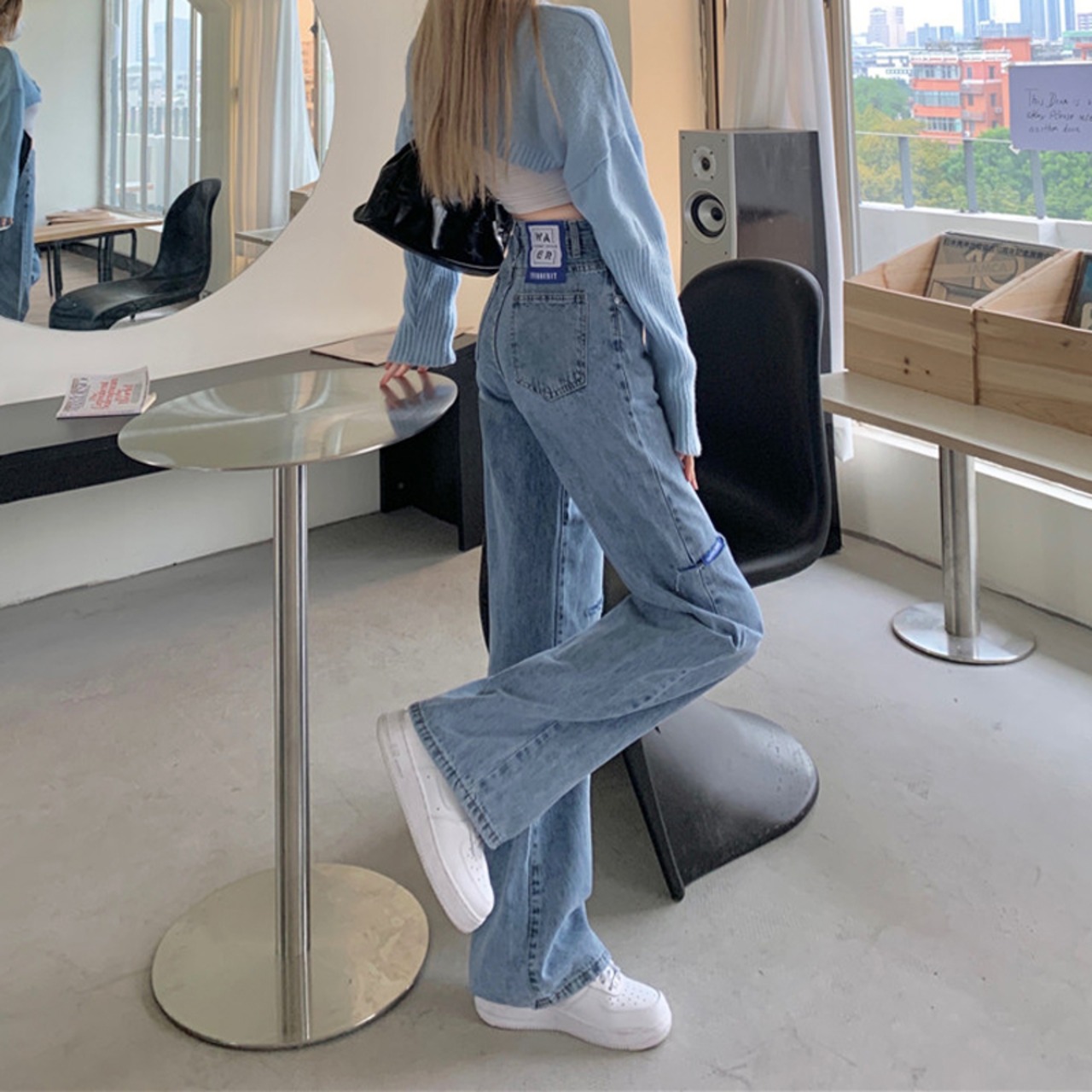 デニムパンツ ダメージ ジーンズ デニム ロングパンツ ハイウエスト トレンド シンプル カジュアル 韓国ファッション S-XL