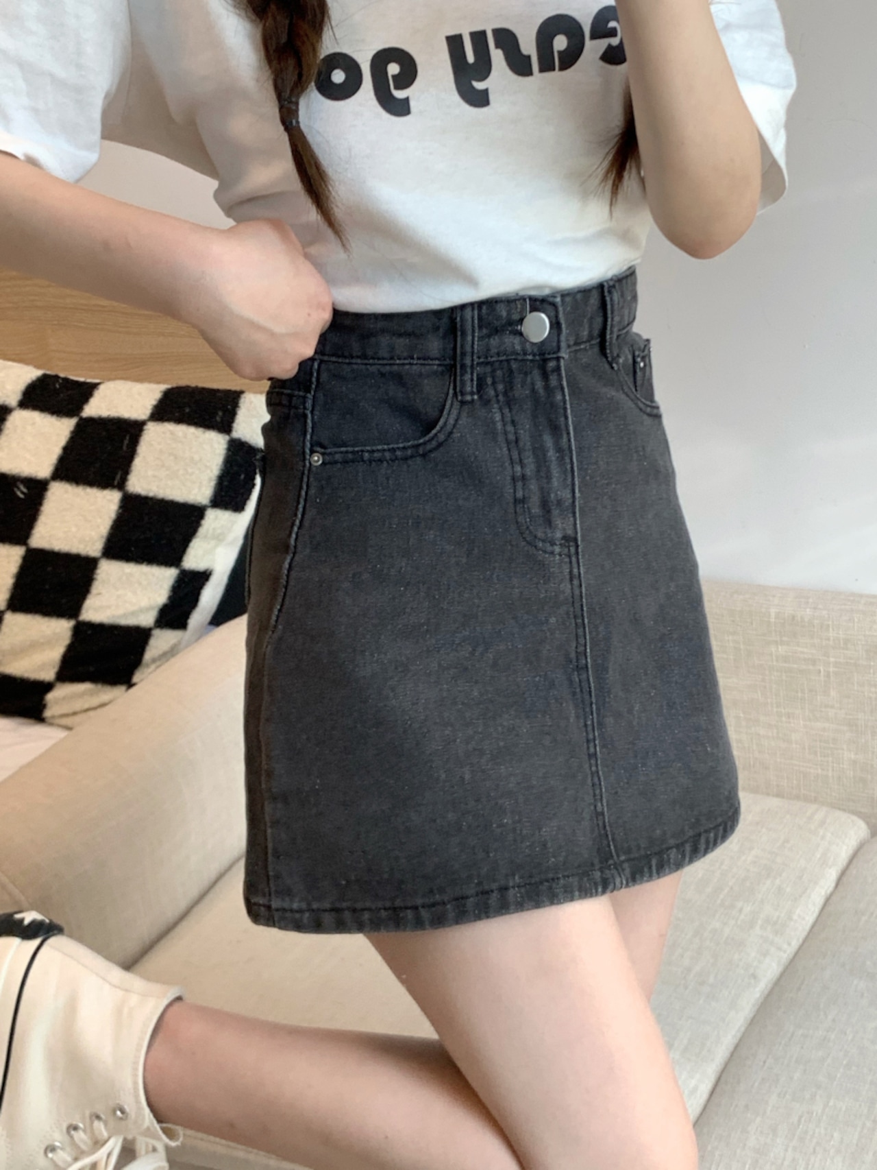 デニムスカート ミニスカート ベーシック ハイウエスト Aライン シンプル レトロ 韓国ファッション 3color S-L