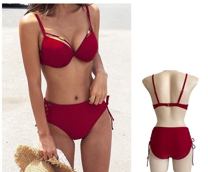 水着 スイムウェア ビキニ サイドリボン 無地 海 プール ビーチ 体型カバー 韓国ファッション セクシー 6color