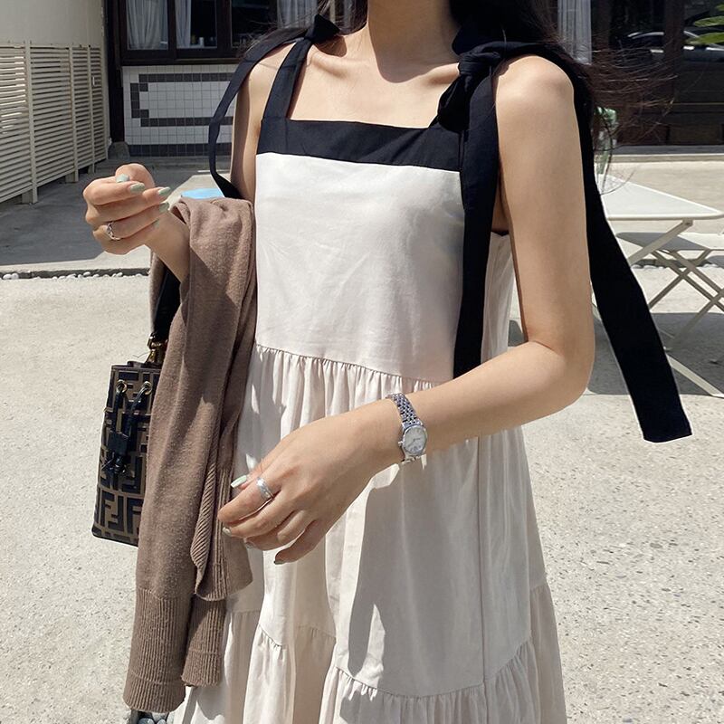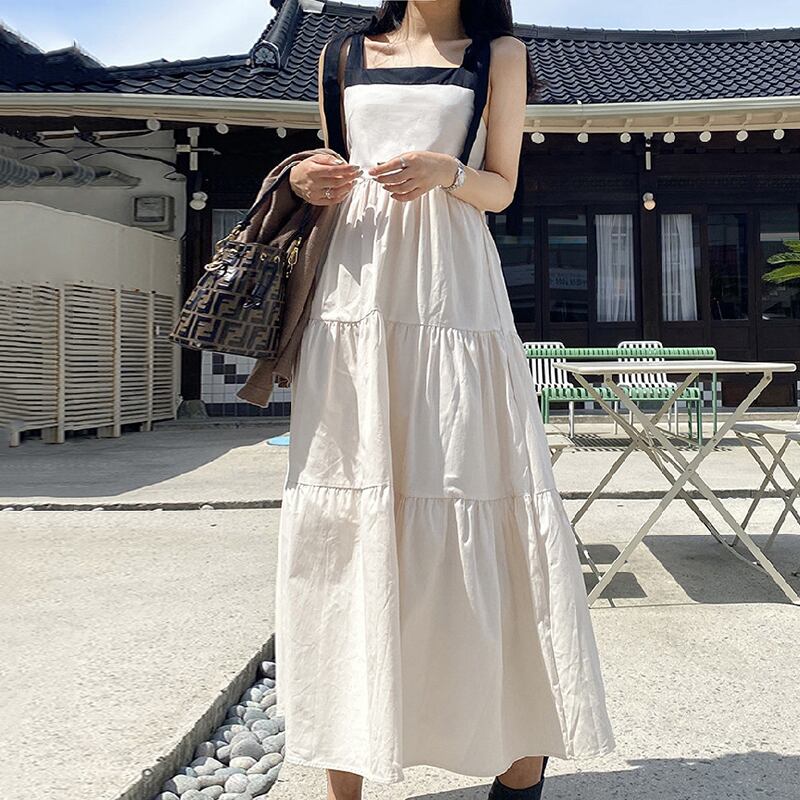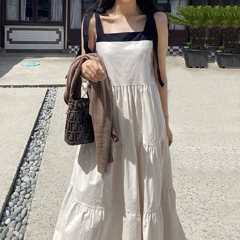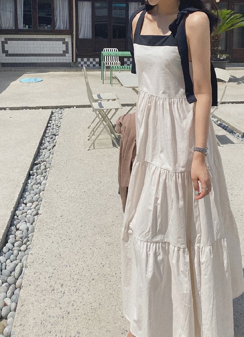 ワンピース ワンピ ロング丈 ワンピース バイカラー ティアード カジュアル デート 大人可愛い 韓国ファッション