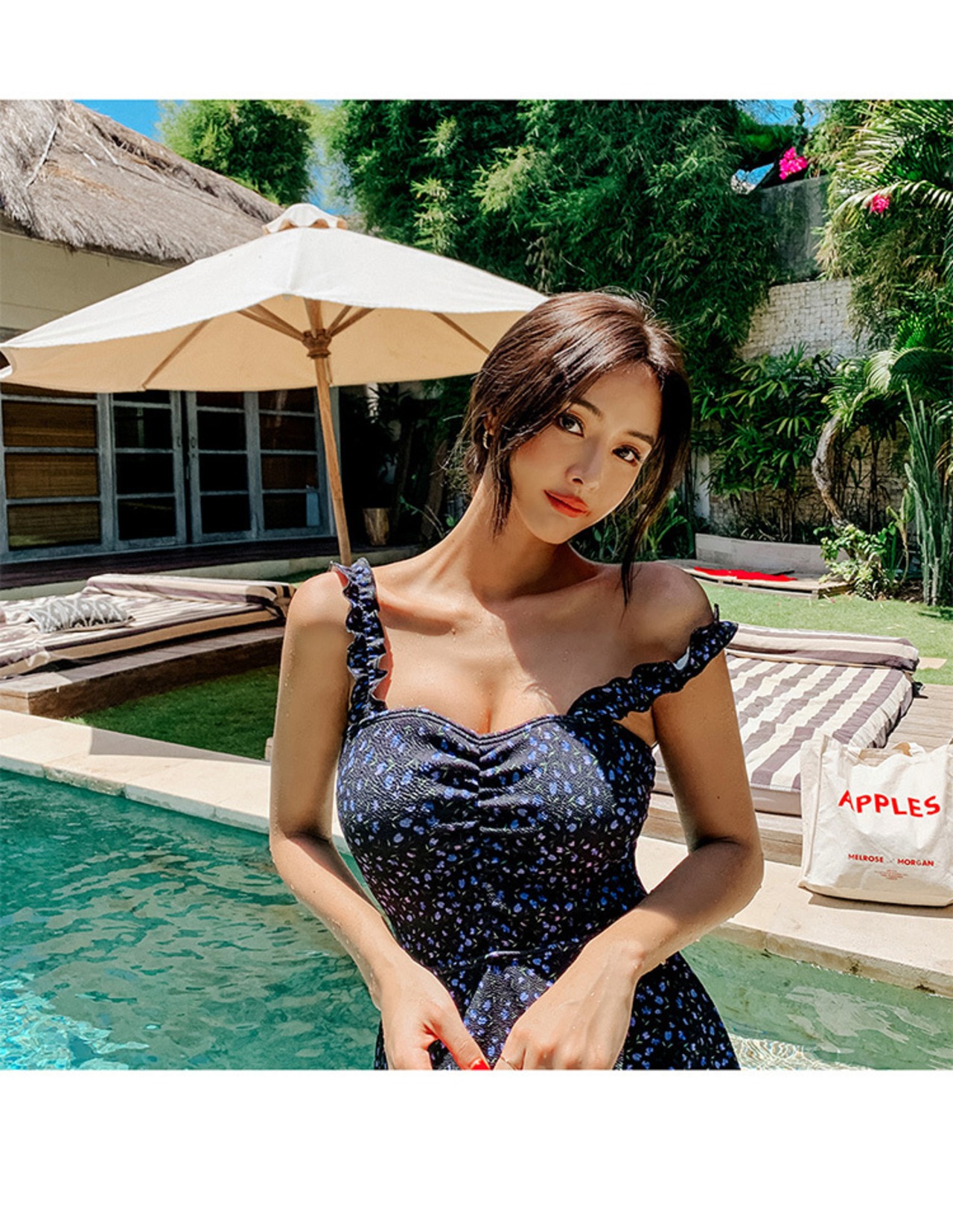 水着 スイムウェア ワンピース水着 花柄 フローラル 海 プール ビーチ 体型カバー 韓国ファッション 大人可愛い