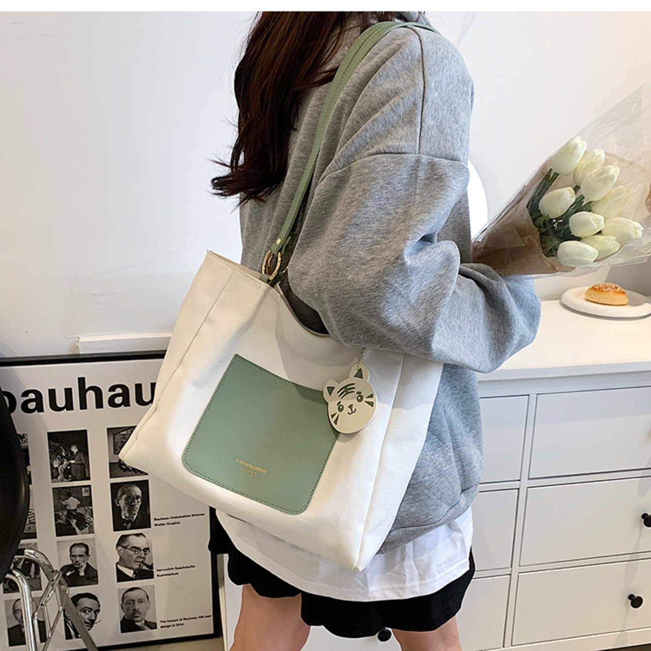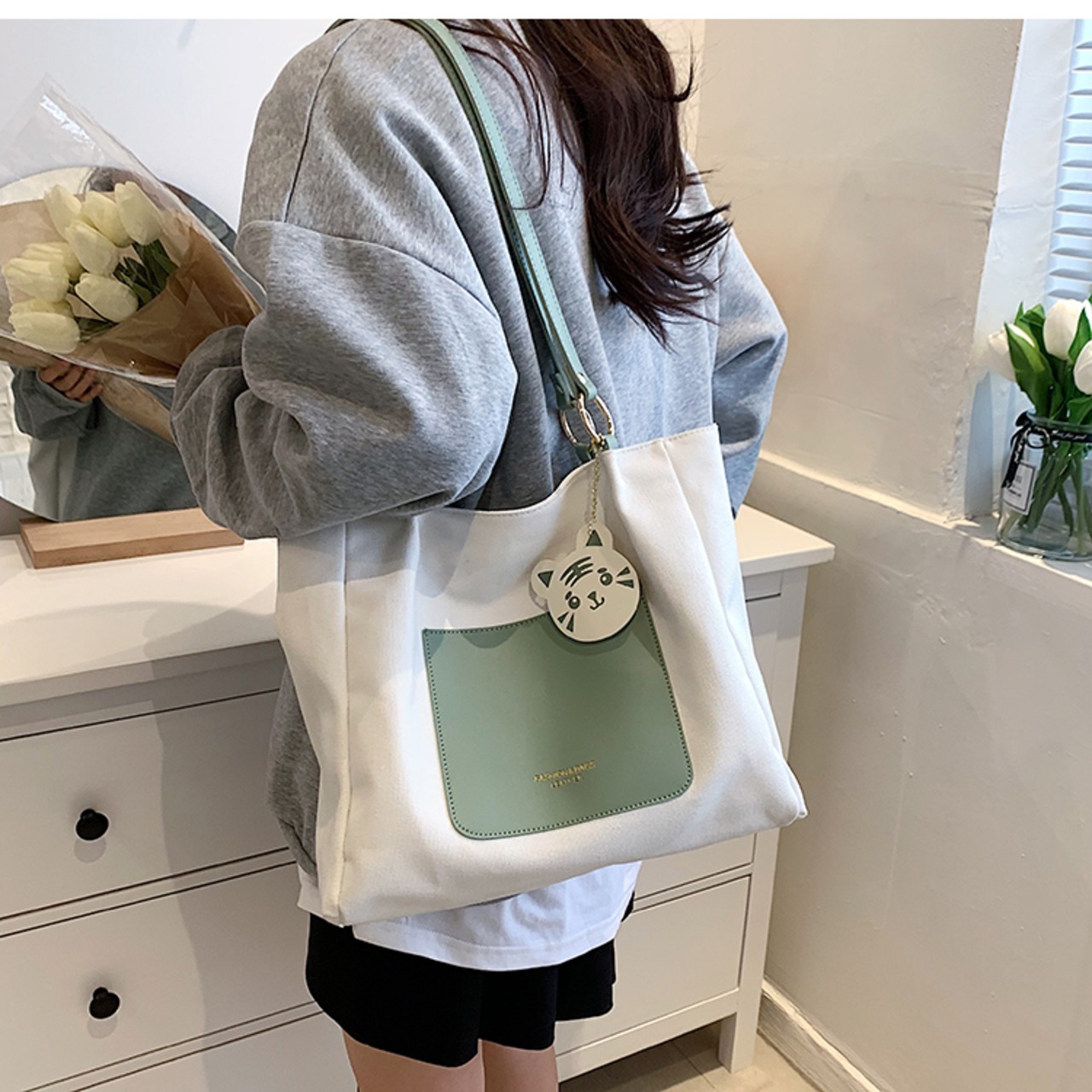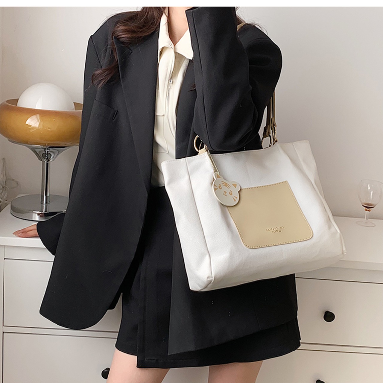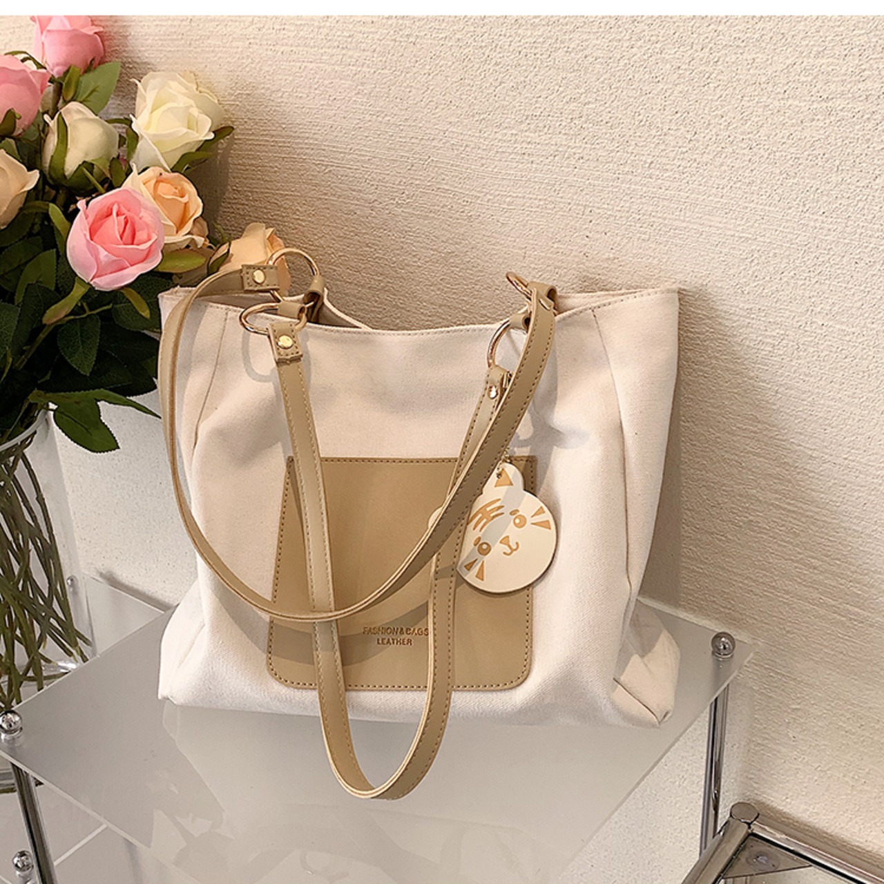 キャンバスバッグ トートバッグ 大容量 バッグ かばん カジュアル シンプル デイリー 通勤 通学 韓国ファッション 4color