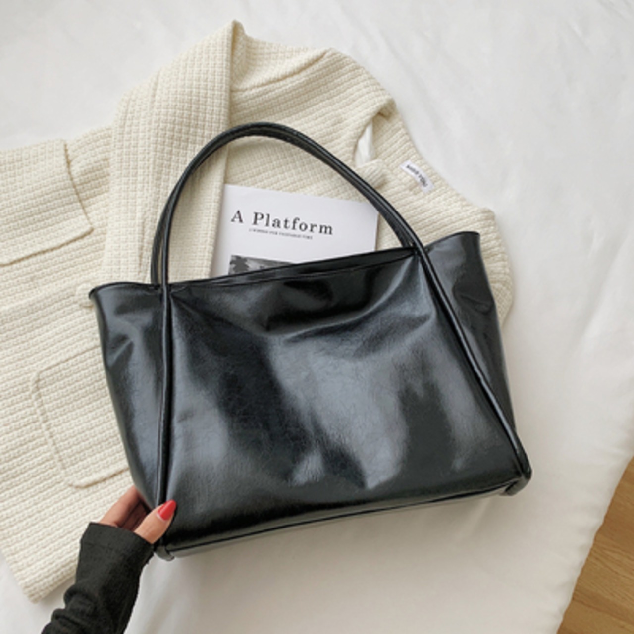 トートバッグ 肩掛け 大容量 PU バッグ カバン かばん シンプル カジュアル 通勤 通学 お出かけ 韓国ファッション 4color