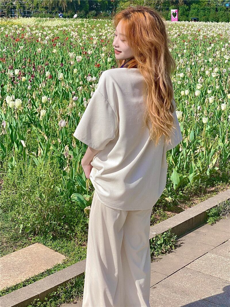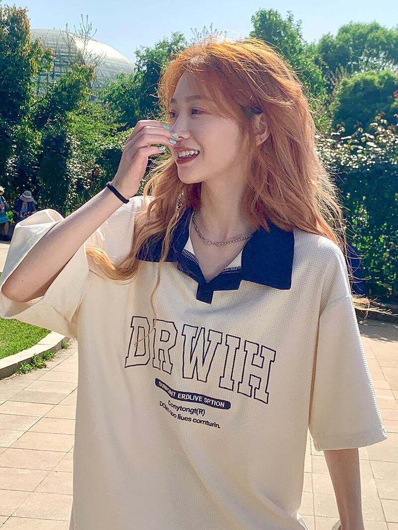 ポロトップス トップス レタープリント ルーズ 半袖 大人可愛い アメカジ カジュアル レトロ 韓国ファッション