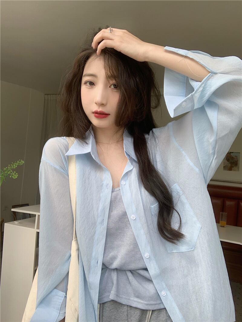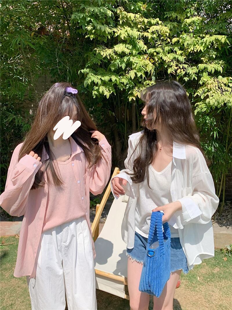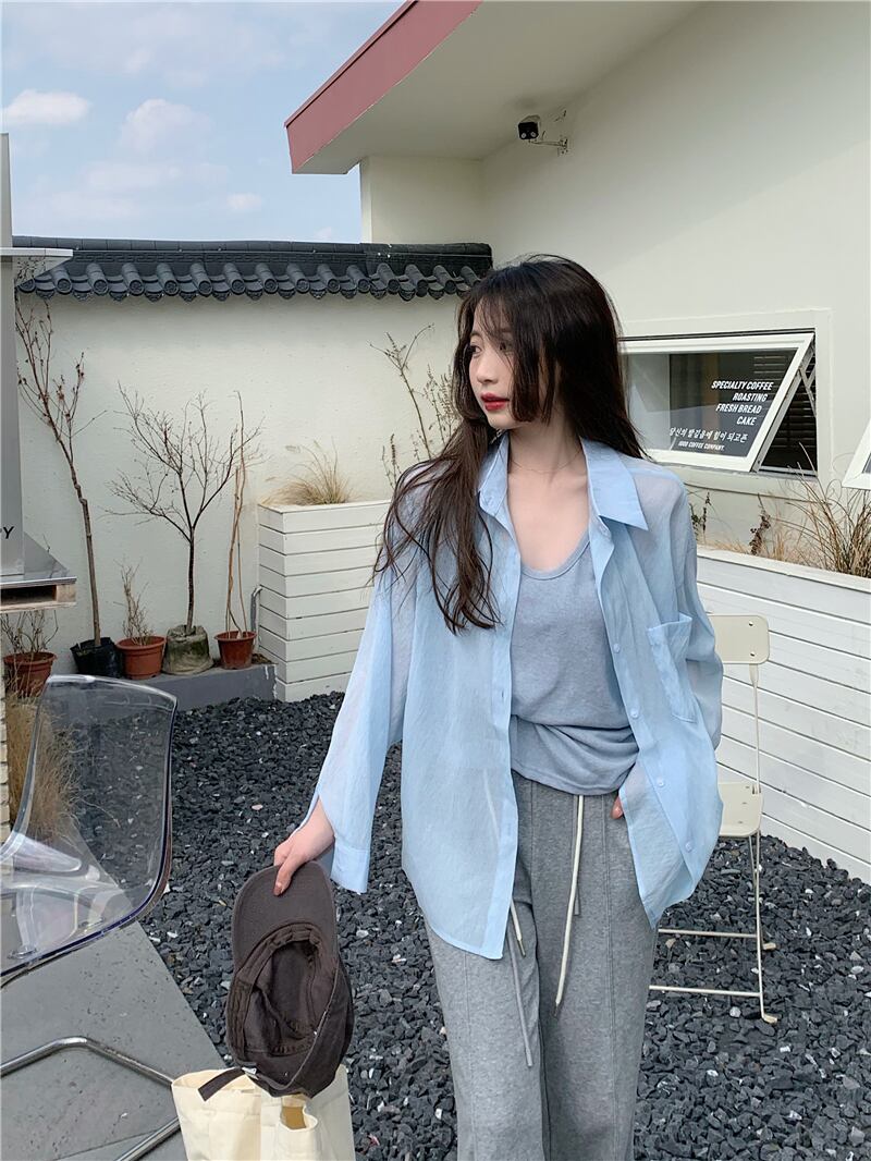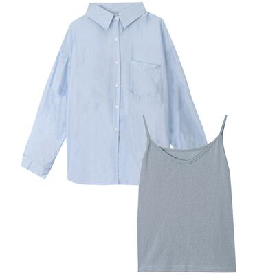 セットアップ 2点セット ツーピース 長袖シャツ キャミソール 着回し 薄手 シンプル フェミニン 韓国ファッション 4color