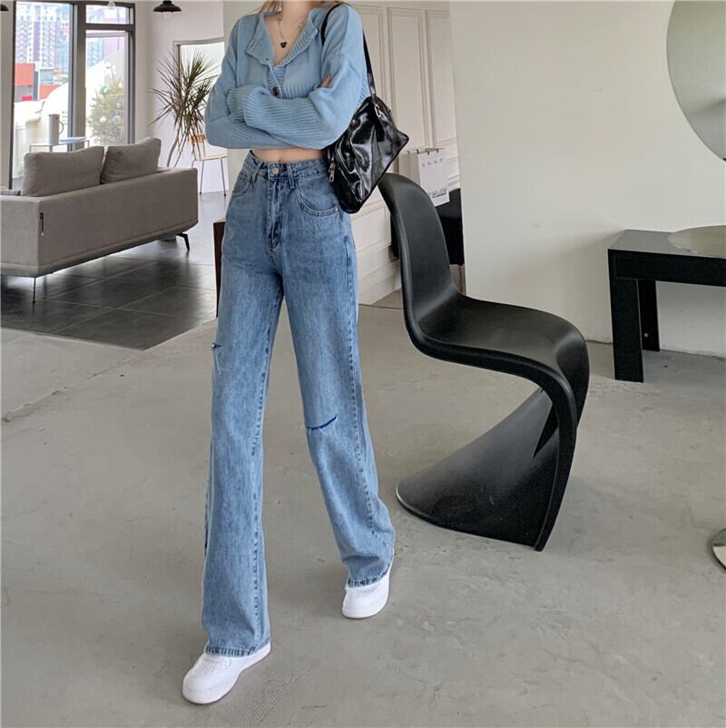 デニムパンツ ジーンズ デニム ロングパンツ ダメージ トレンド シンプル カジュアル 韓国ファッション S-XL