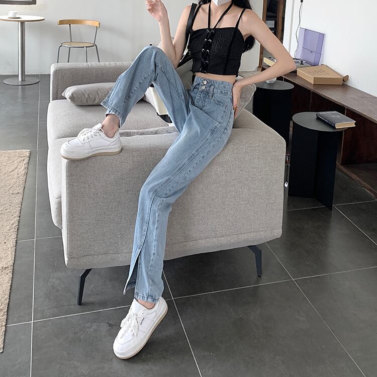 スリットデニム デニムパンツ スリット ジーンズ トレンド シンプル カジュアル 韓国ファッション S-XL