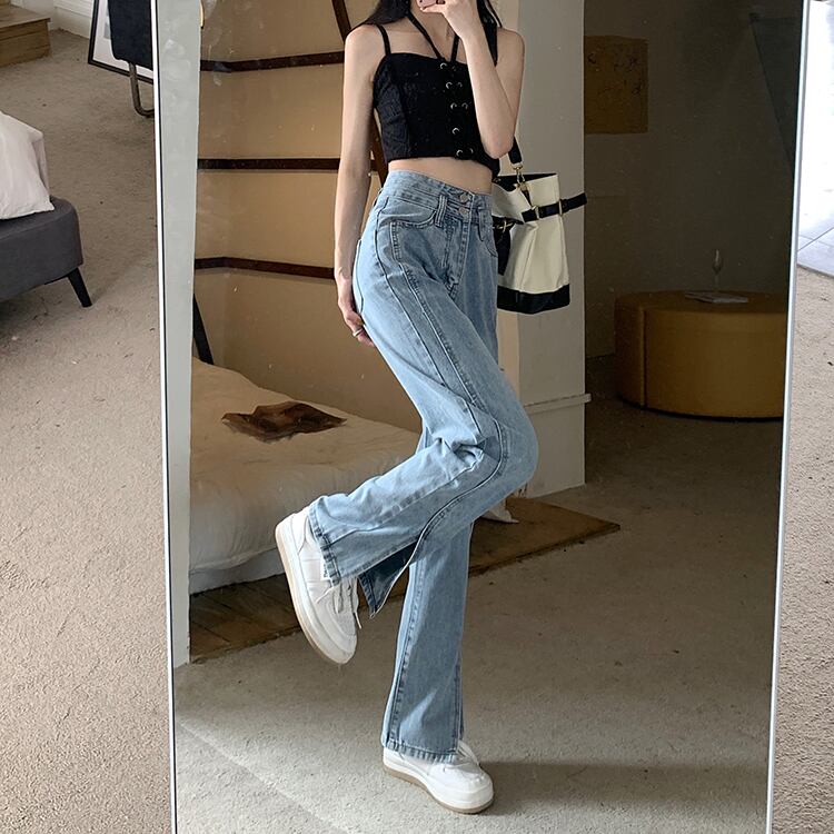スリットデニム デニム スリット ロングパンツ ジーンズ シンプル カジュアル レトロ 韓国ファッション S-XL