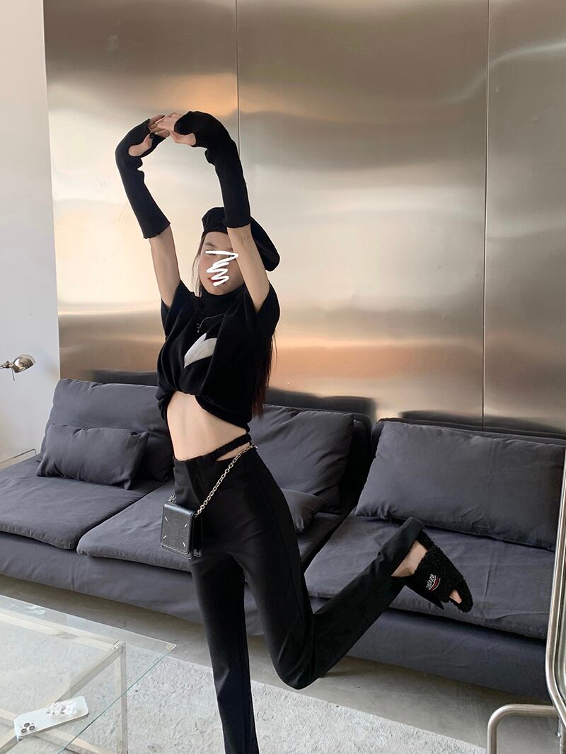 スリットパンツ ボトム カジュアルパンツ ハイウエスト ワントーン 無地 シンプル カジュアル 韓国ファッション S-L