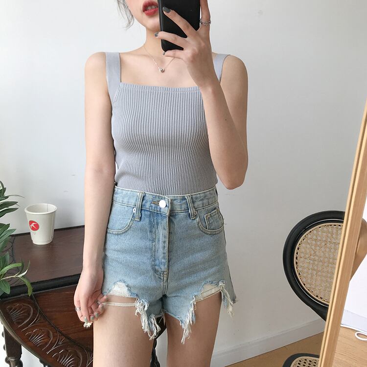 リブタンク キャミソール タンクトップ タイト スリム カラー豊富 シンプル カジュアル 6color