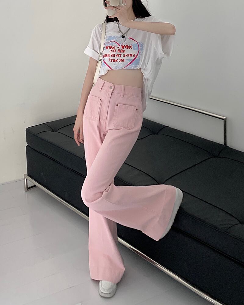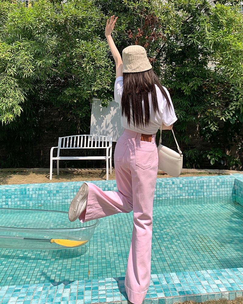 カラーデニムパンツ ボトム ジーパン ジーンズ ハイウエスト シンプル カジュアル 韓国ファッション S-L
