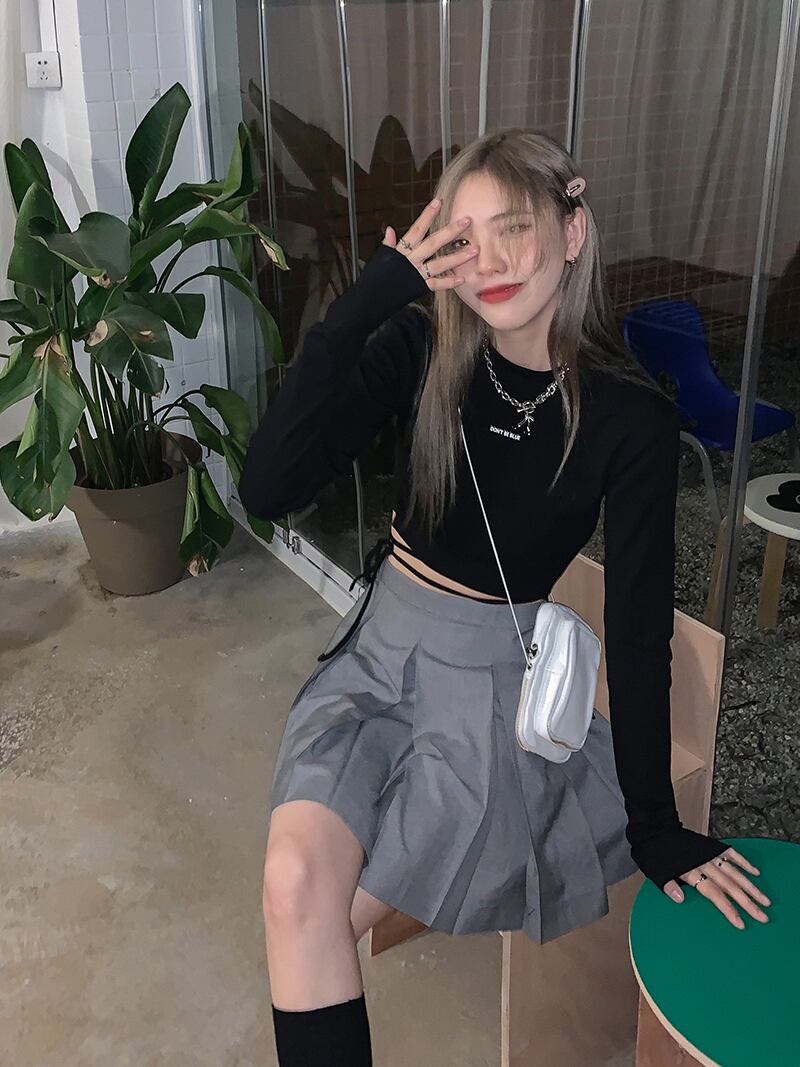 長袖トップス ロンT トップス 長袖 ショート スリム シンプル カジュアル 韓国ファッション 3color