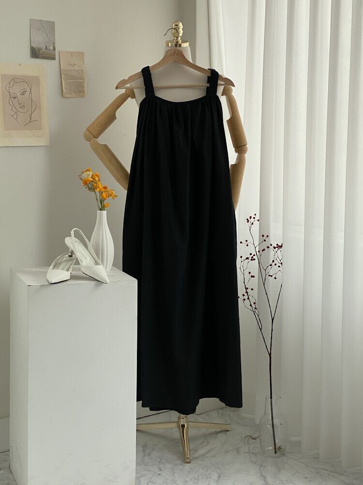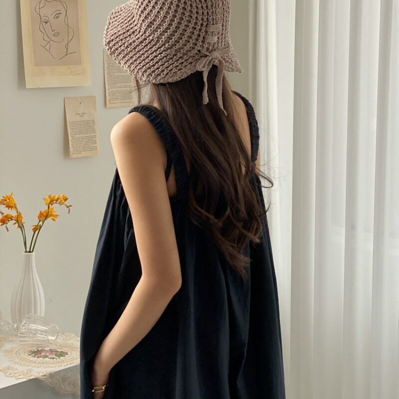 ノースリワンピース ワンピ サマーワンピ ノースリーブ シンプル カジュアル レトロ 韓国ファッション 2color