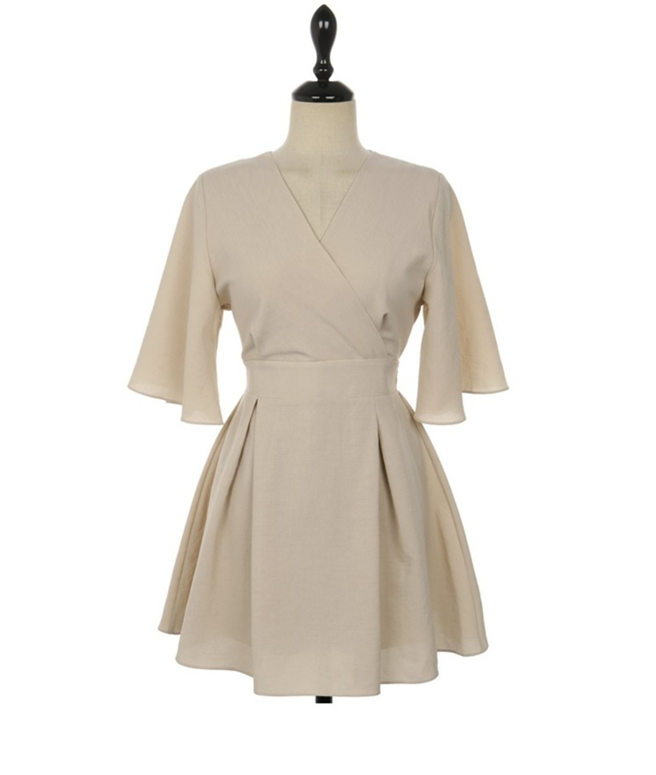 ワンピース ミニ ショート Vネック Aライン ガーリー 大人可愛い レトロ 韓国ファッション 3color S-XL