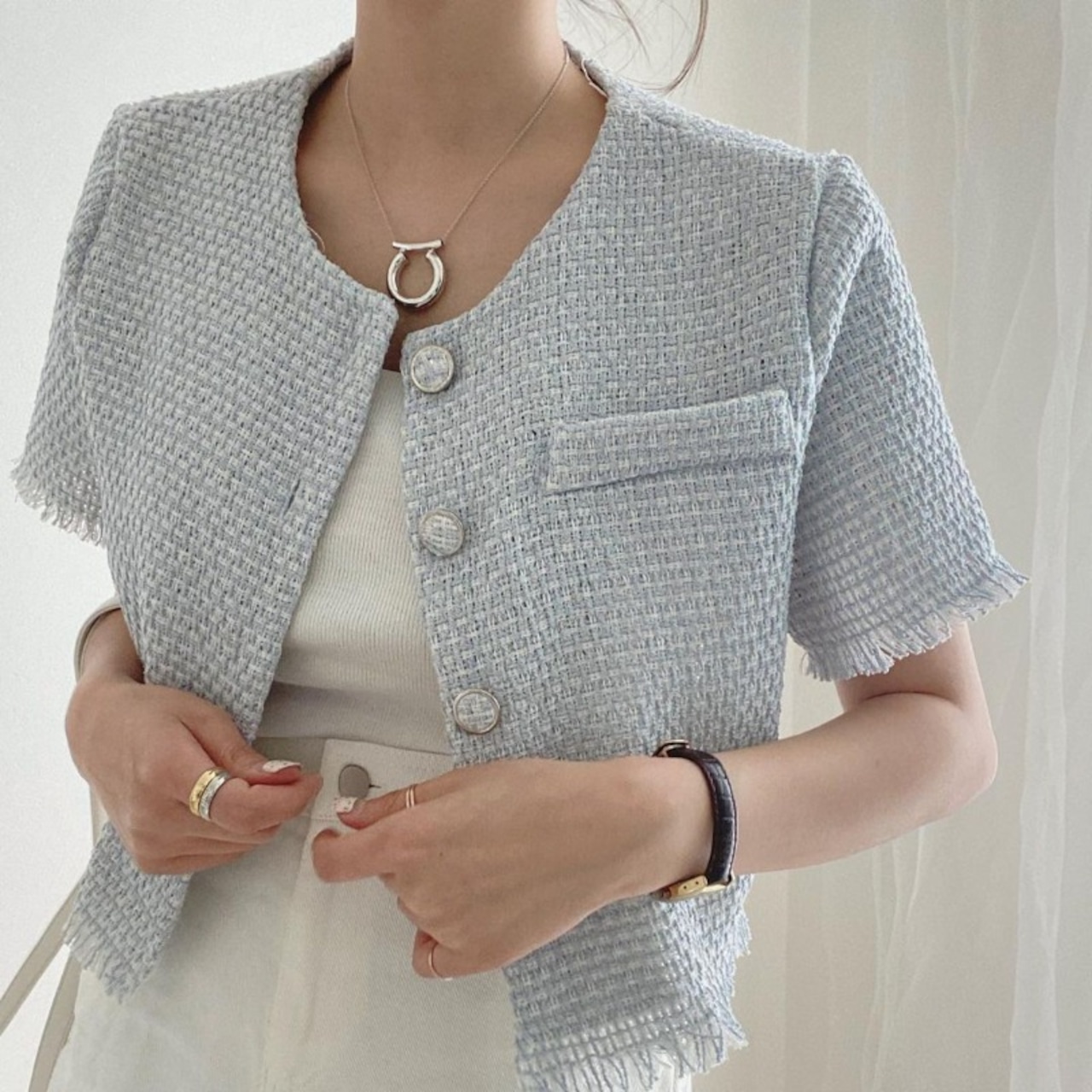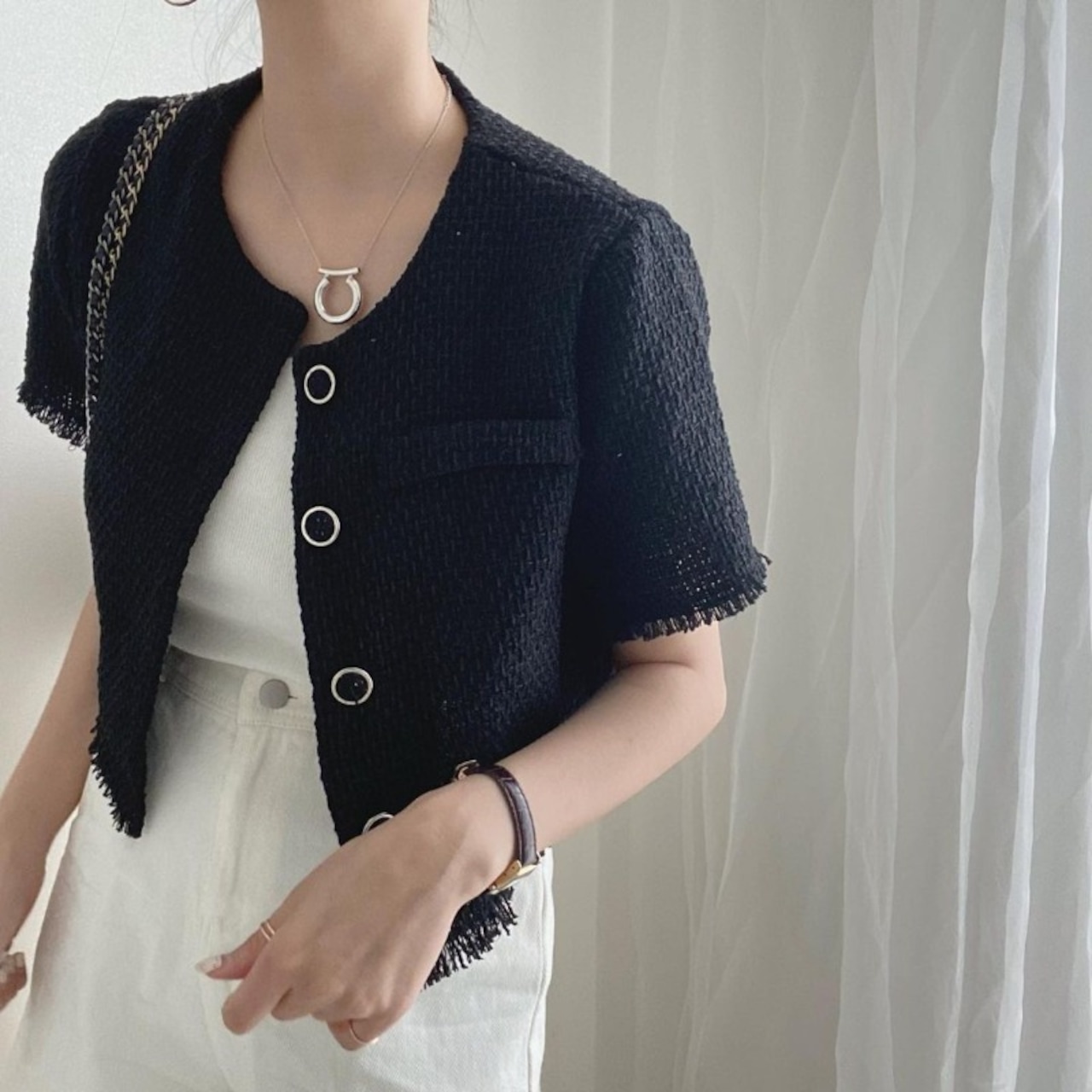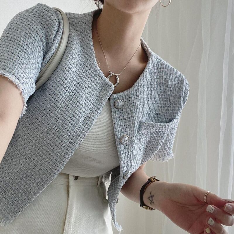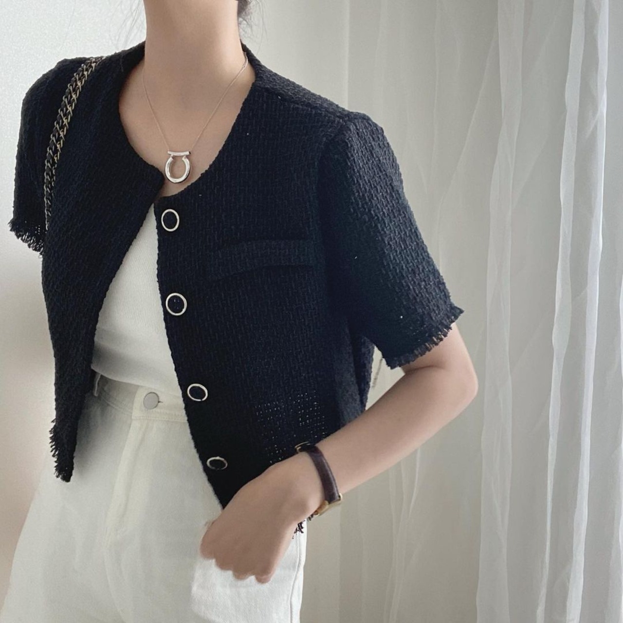 サマージャケット ジャケット アウター 半袖 ショート丈 シンプル きれいめ フェミニン 通勤 通学 韓国ファッション 2color