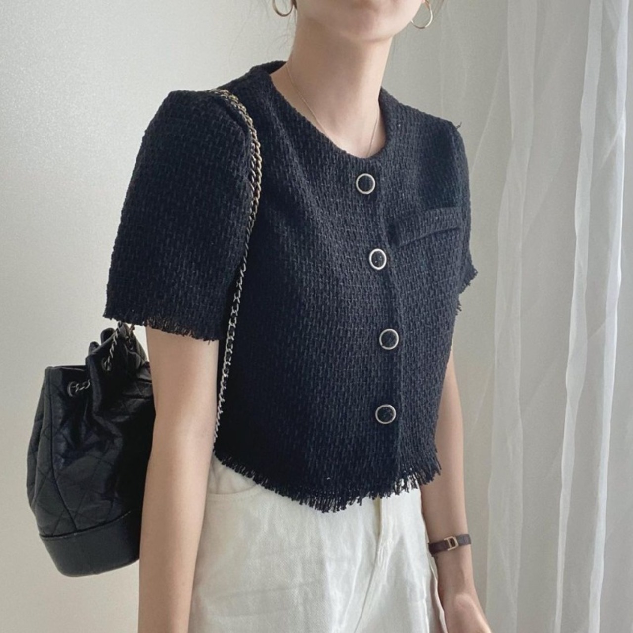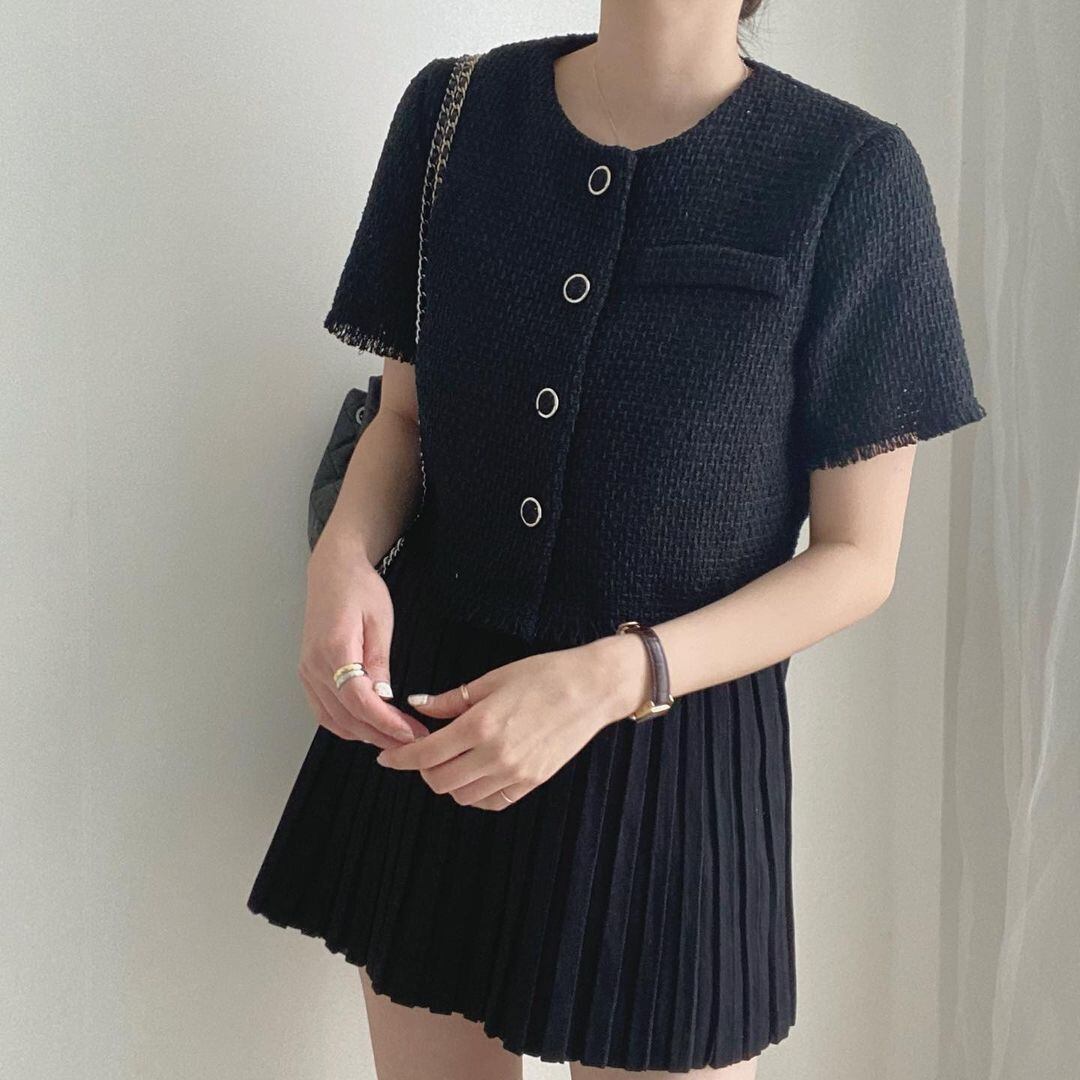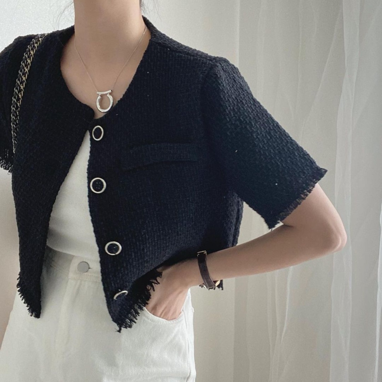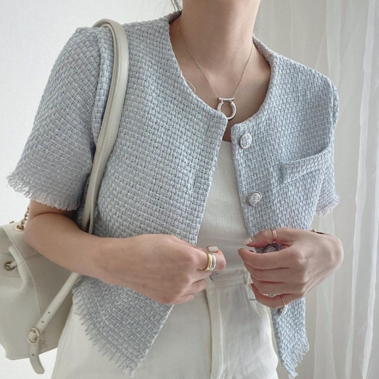 サマージャケット ジャケット アウター 半袖 ショート丈 シンプル きれいめ フェミニン 通勤 通学 韓国ファッション 2color