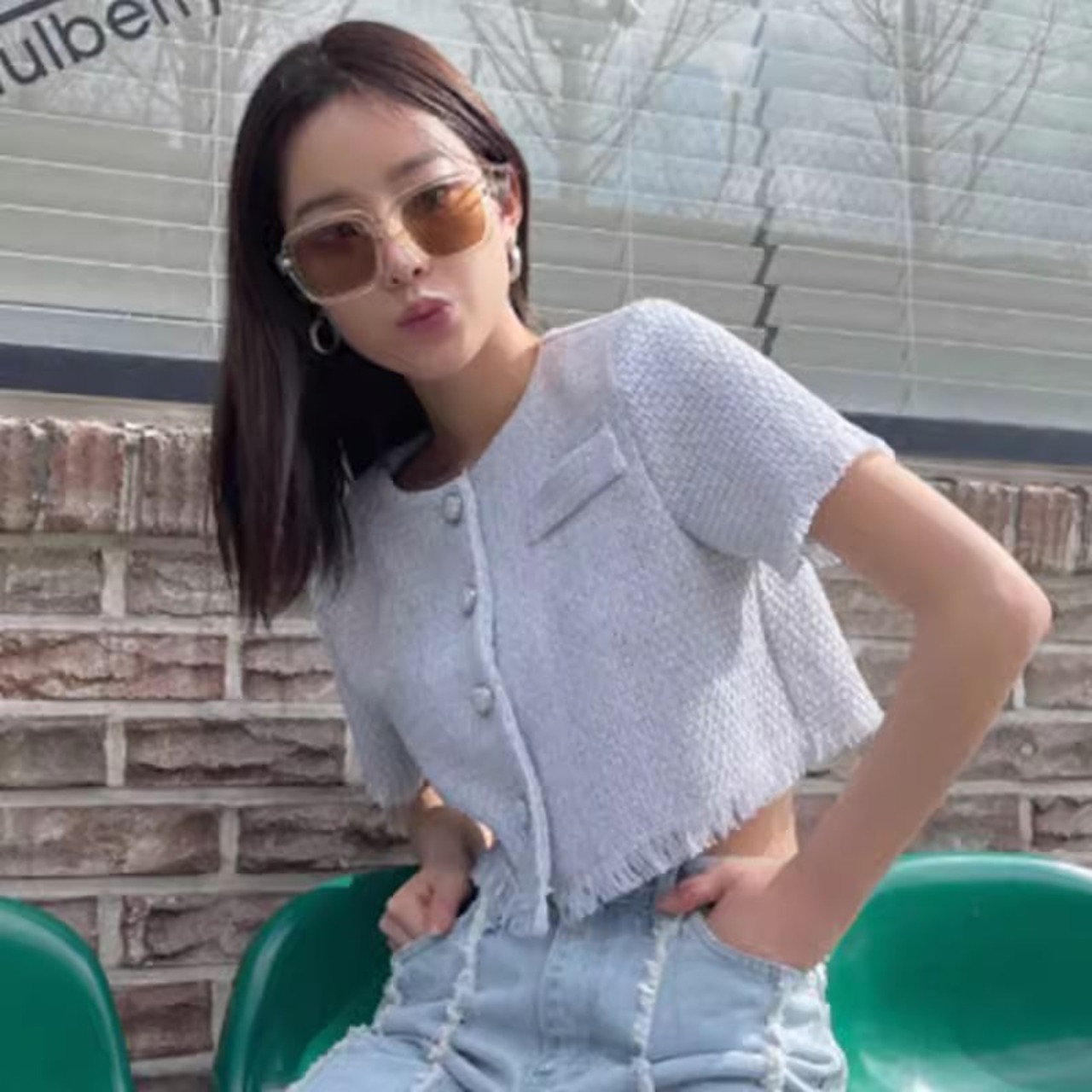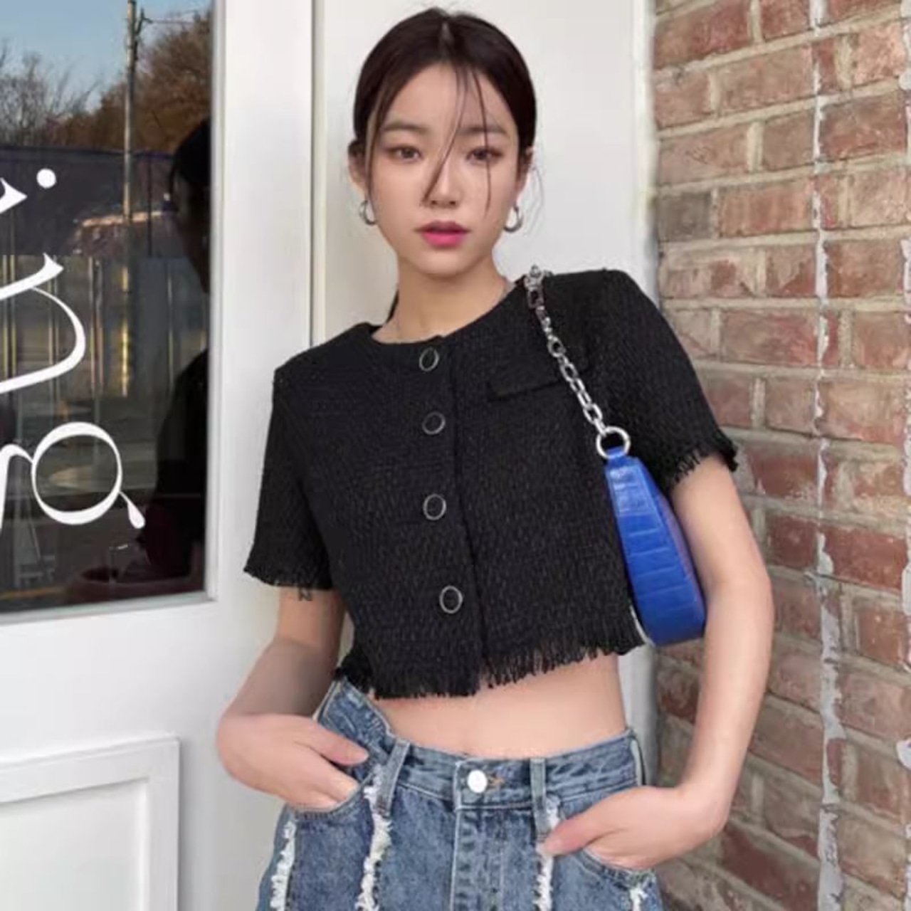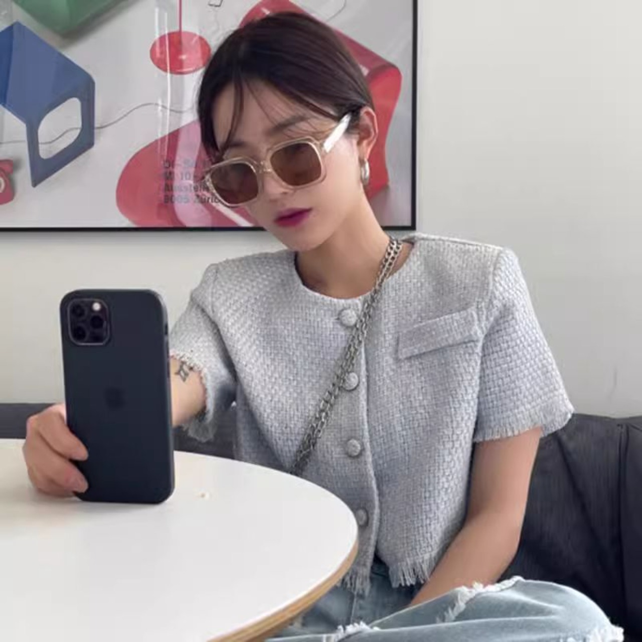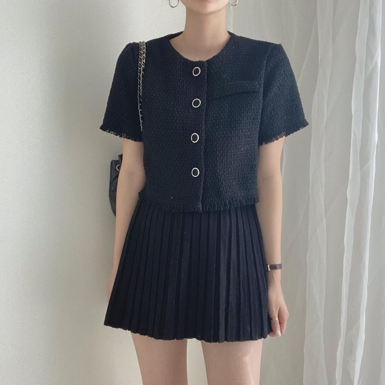 サマージャケット ジャケット アウター 半袖 ショート丈 シンプル きれいめ フェミニン 通勤 通学 韓国ファッション 2color