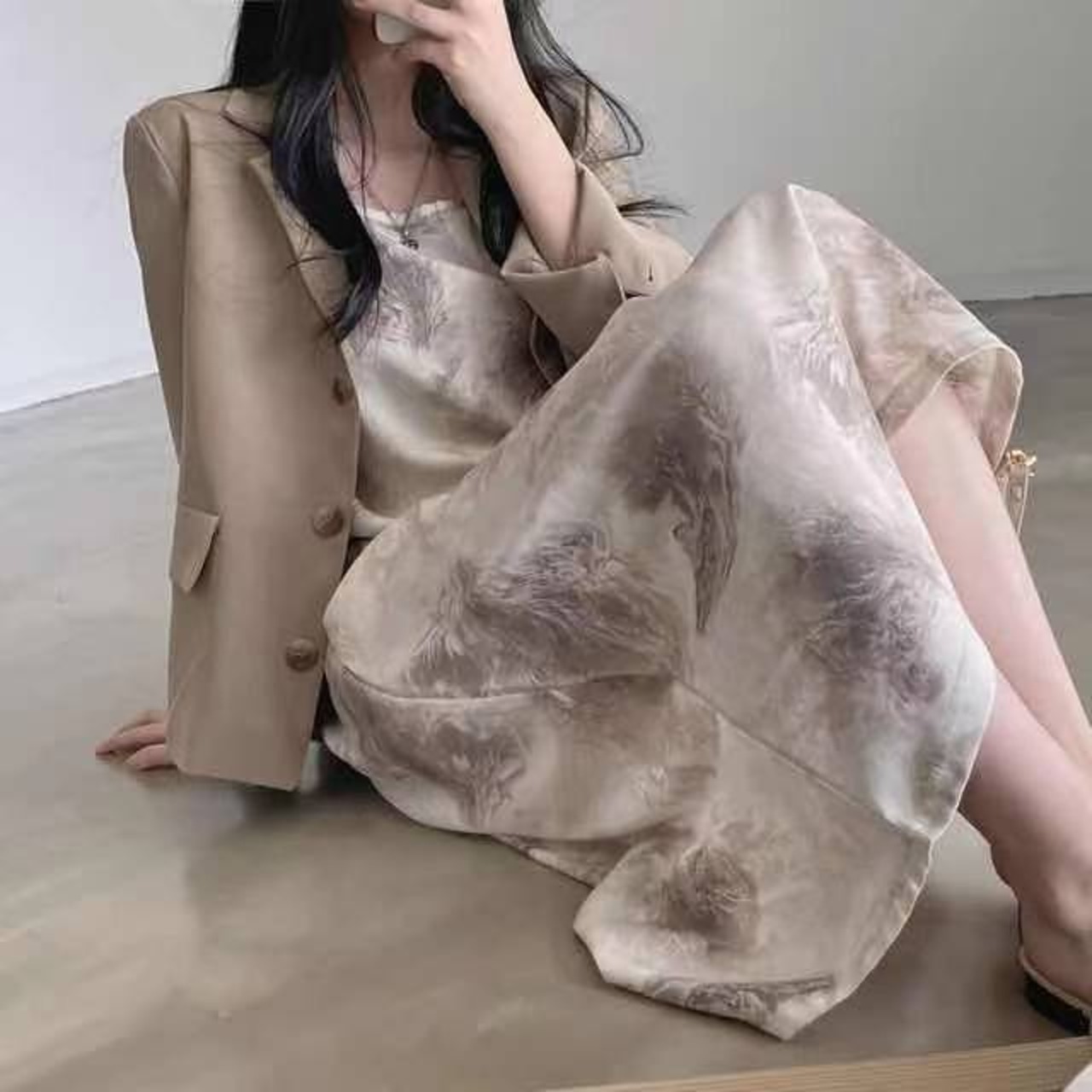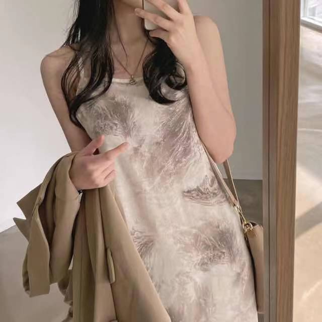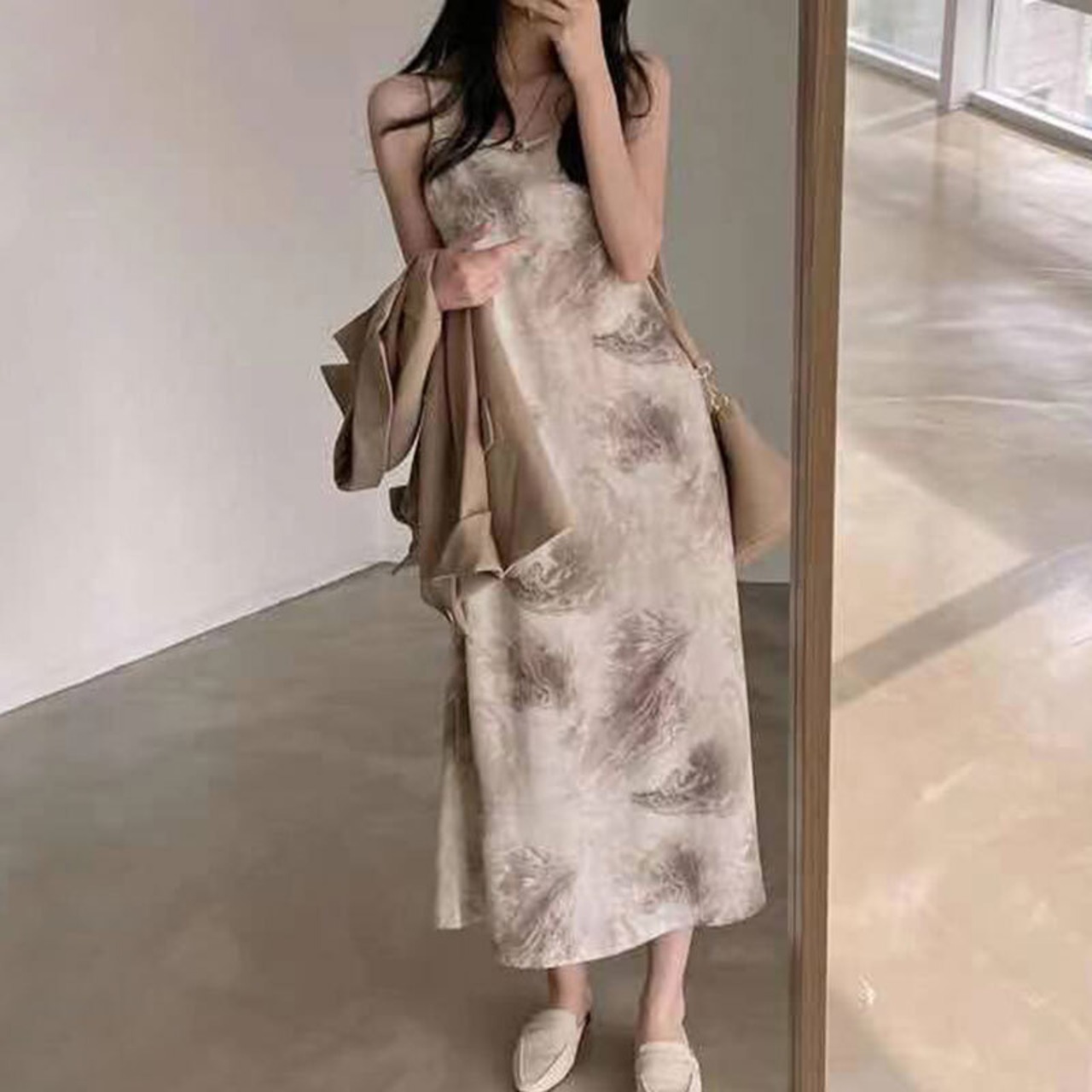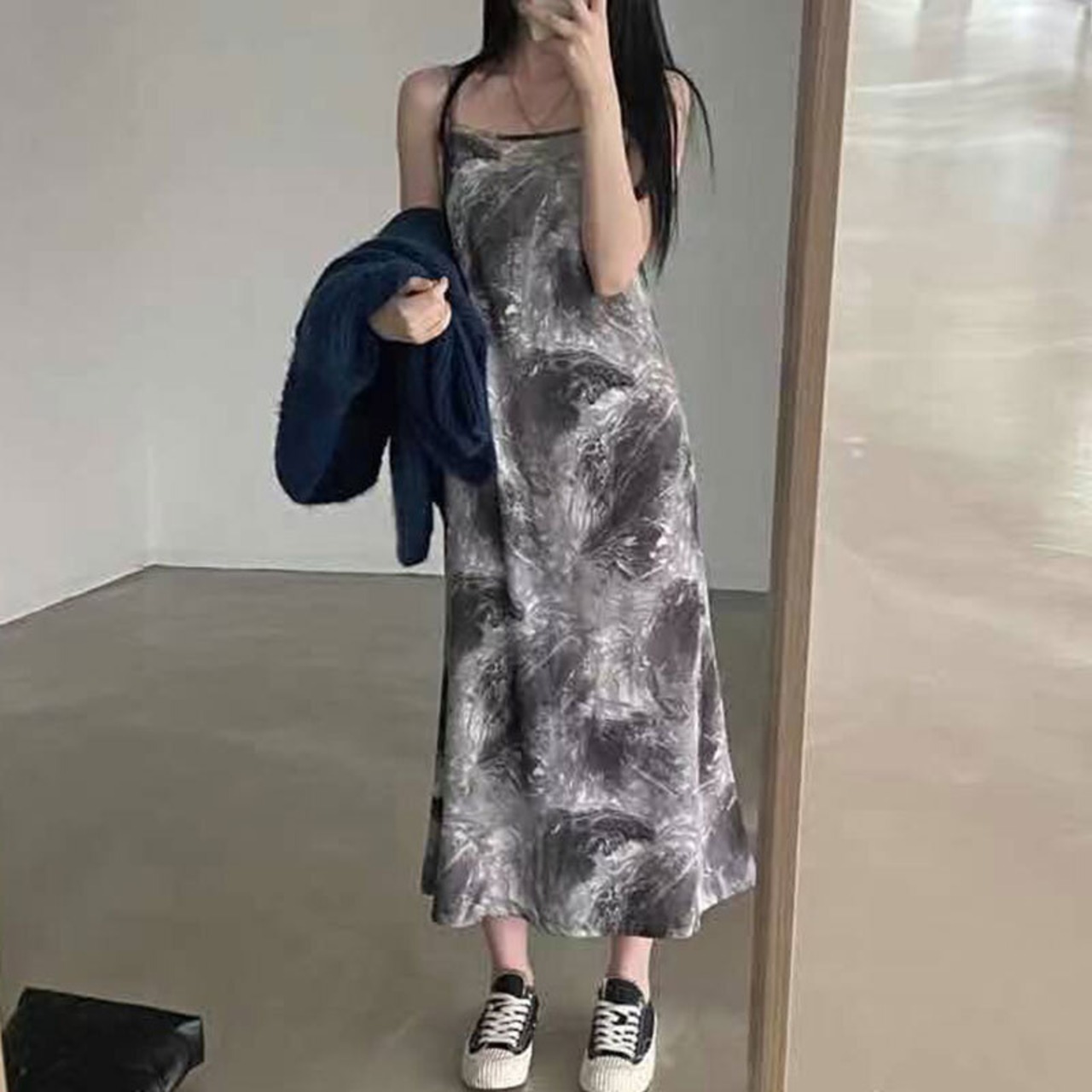 キャミワンピース ノースリーブ ロング 絞り染め タイダイ カジュアル セクシー 韓国ファッション 2color