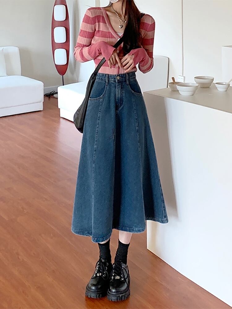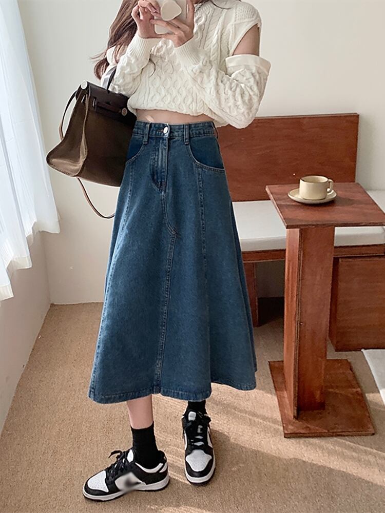 デニムスカート デニム 無地 ワントーン ボトム カジュアル レトロ シンプル 韓国ファッション S-XL