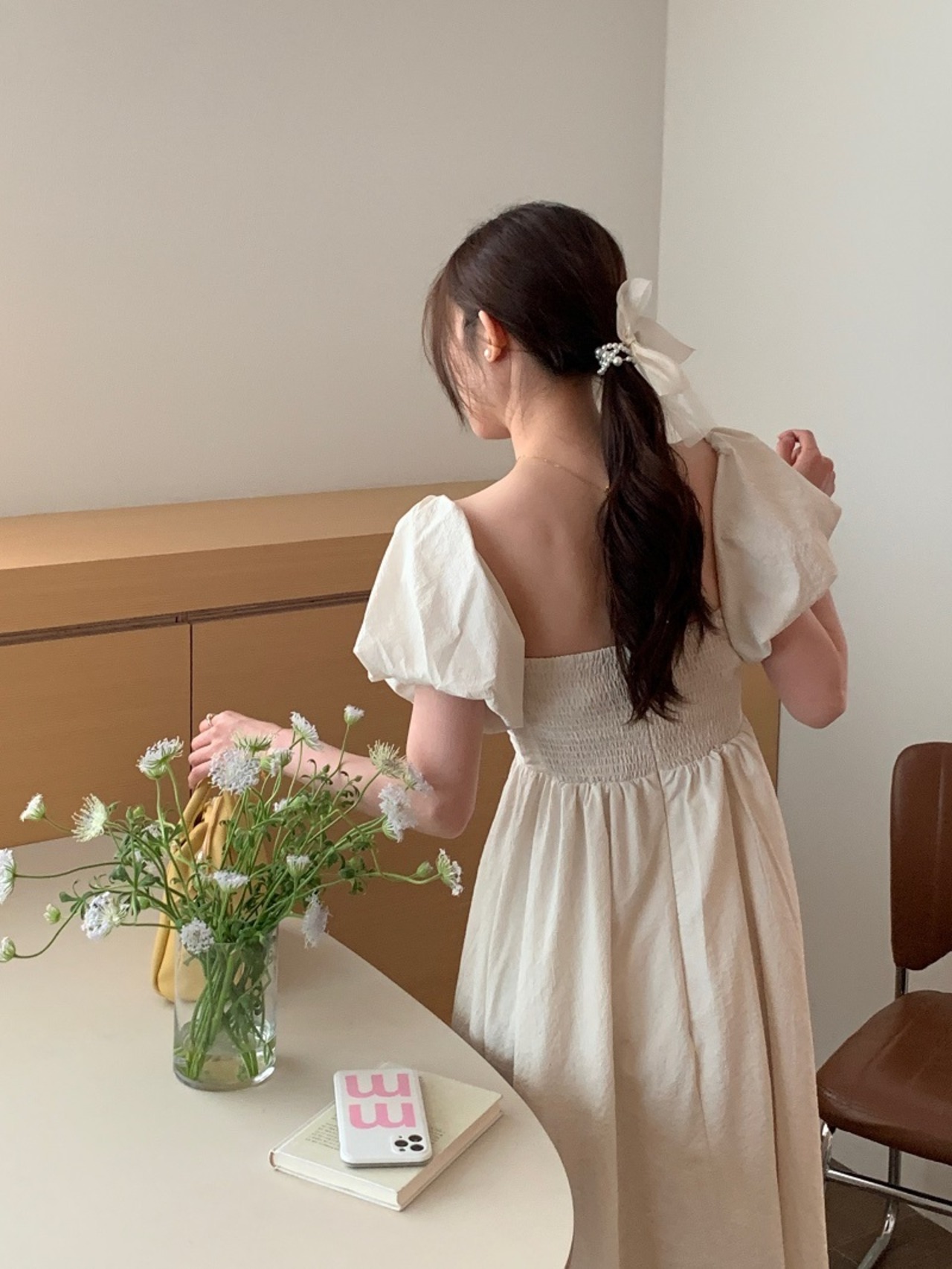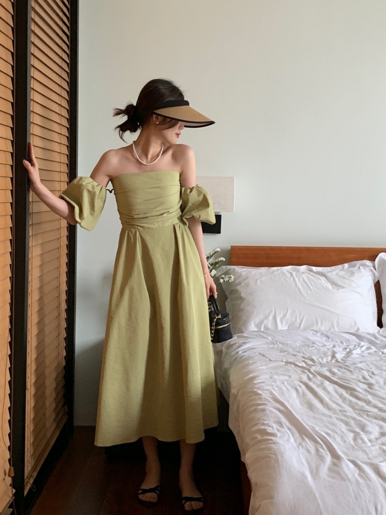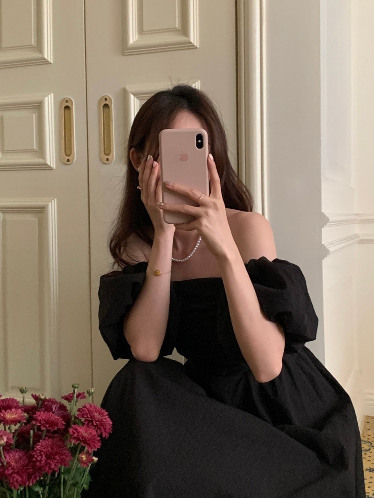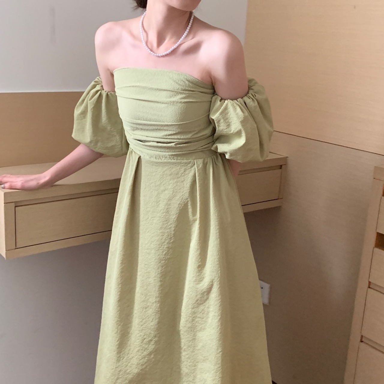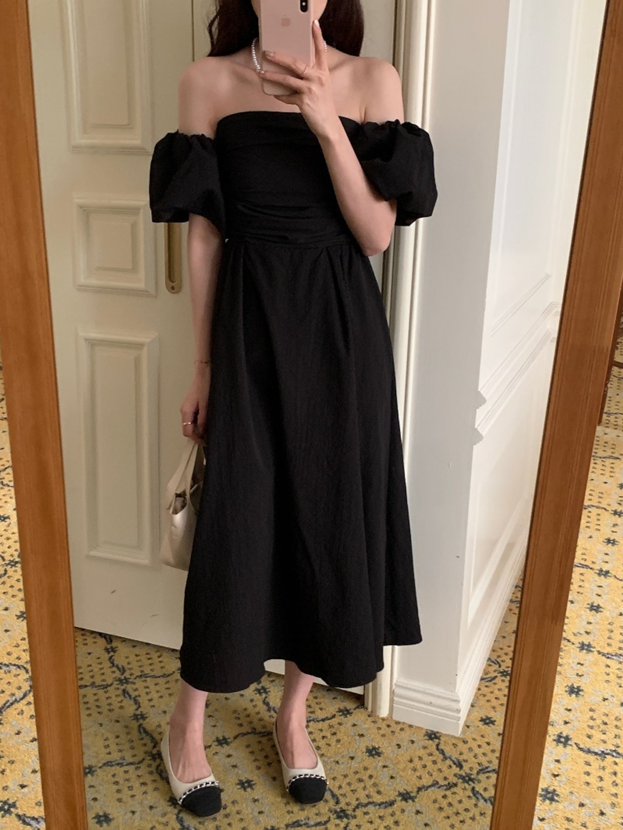 オフショルワンピース ロングワンピース パフスリ ドレス きれいめ 大人可愛い レトロ 韓国ファッション 3color