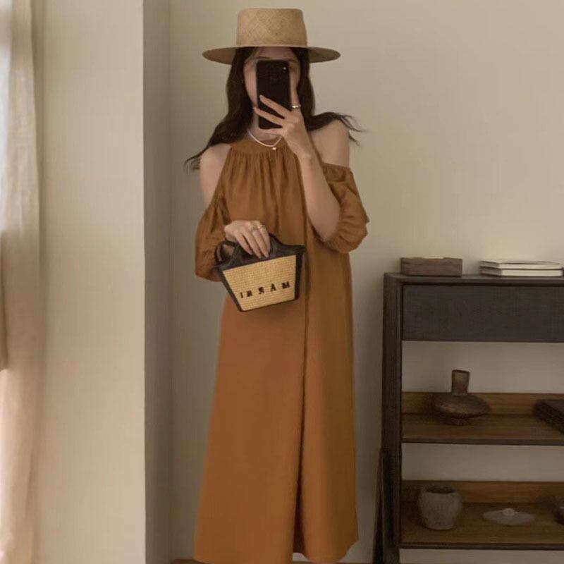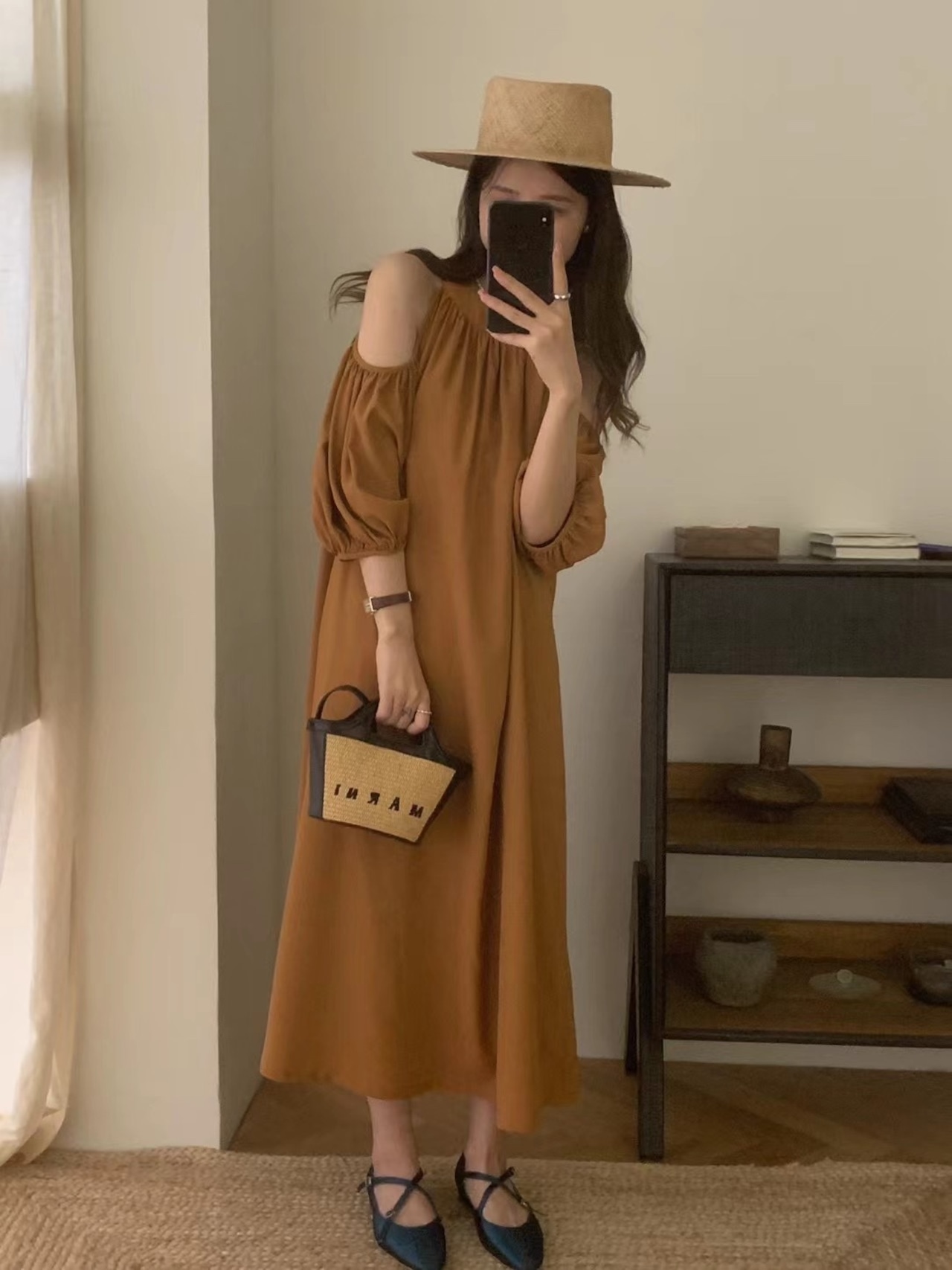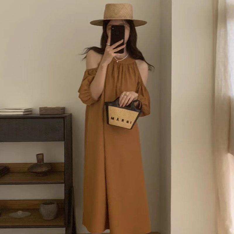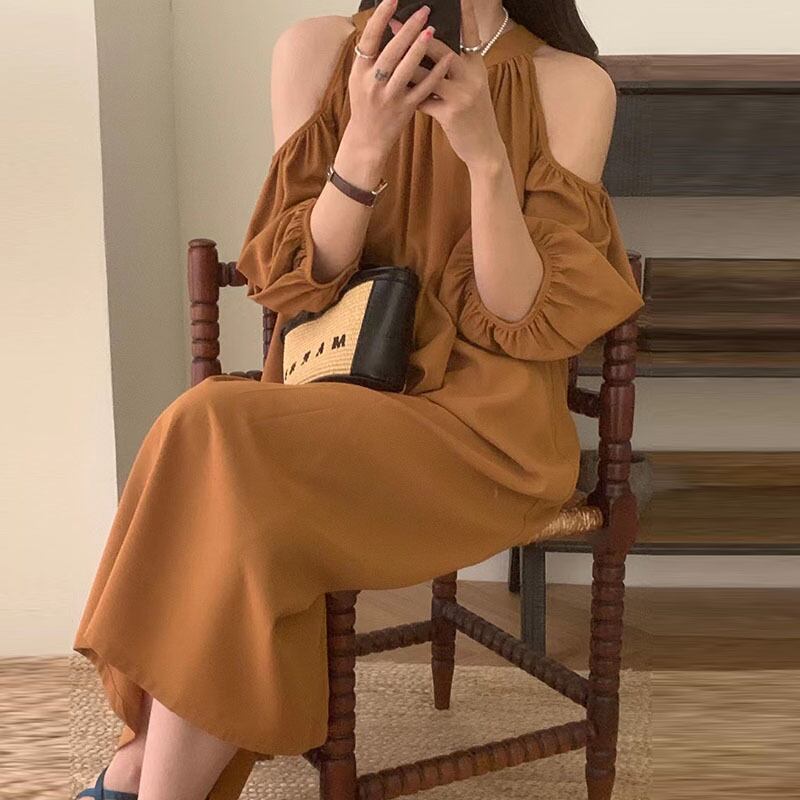 オープンショルダーワンピース ロングワンピース きれいめ セクシー 大人可愛い レトロ 韓国ファッション