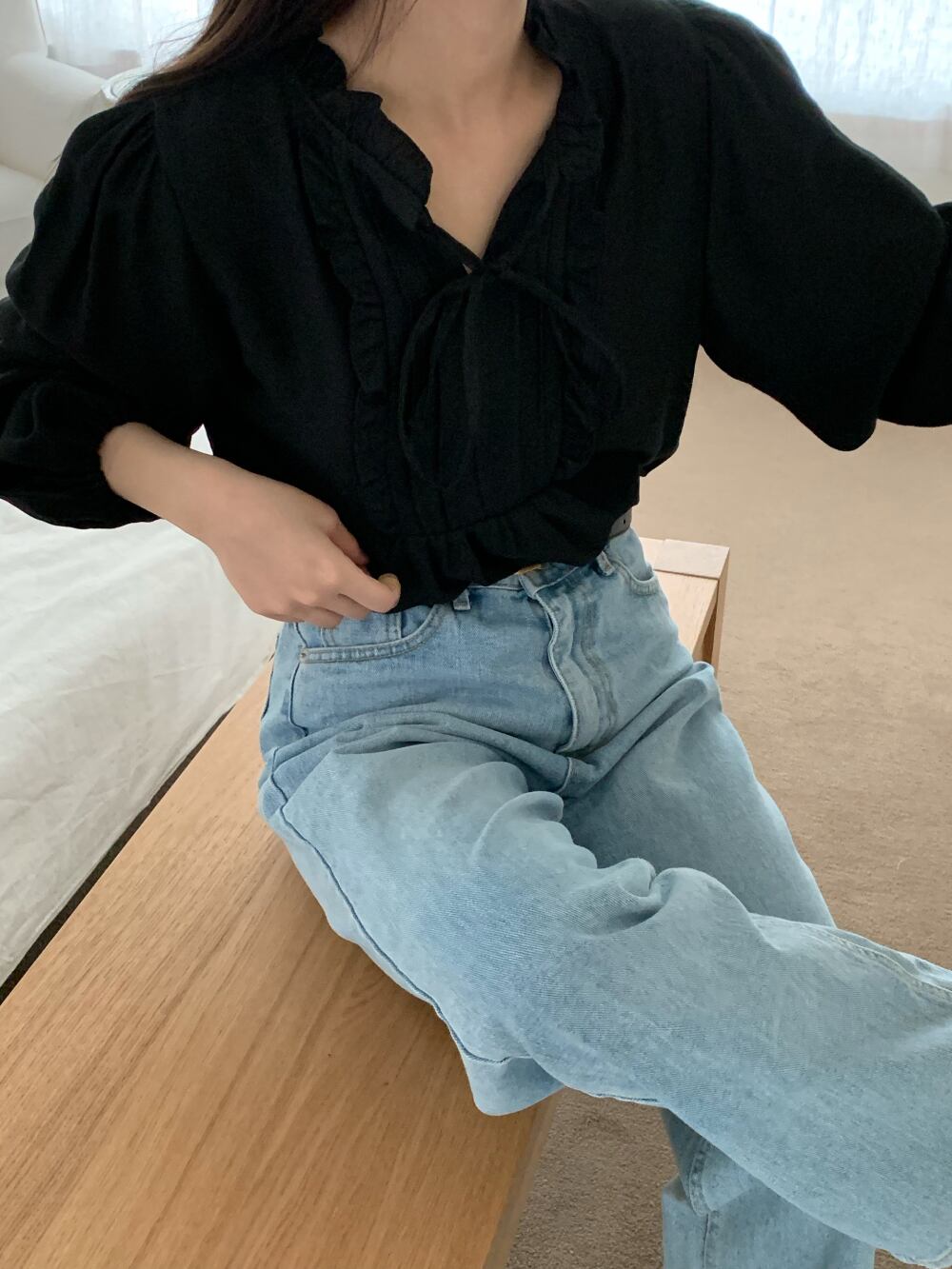 フリルブラウス シャツ トップス 長袖 フリル レトロ 大人可愛い 韓国ファッション 2color
