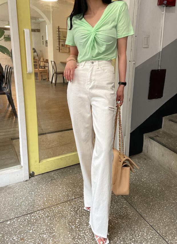 スリットデニム ボトム カジュアルパンツ ダメージ ワントーン 無地 シンプル カジュアル 韓国ファッション S-L