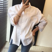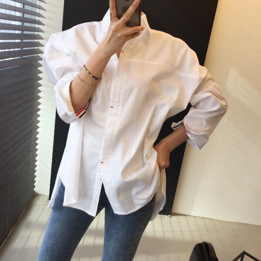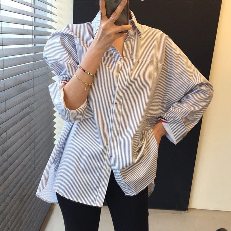 バックデザインブラウス シャツ トリコロール ライン トップス カジュアル レトロ 韓国ファッション 2color