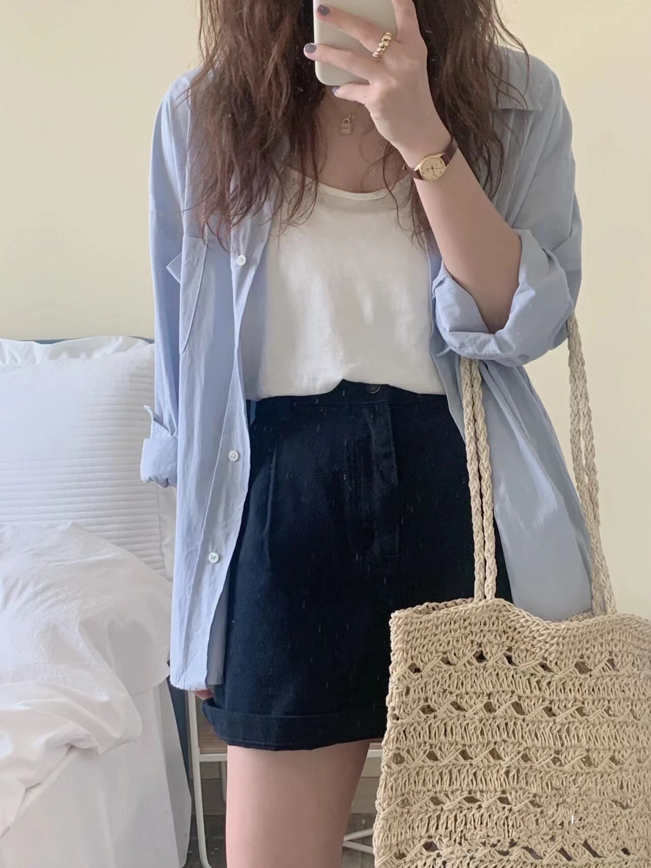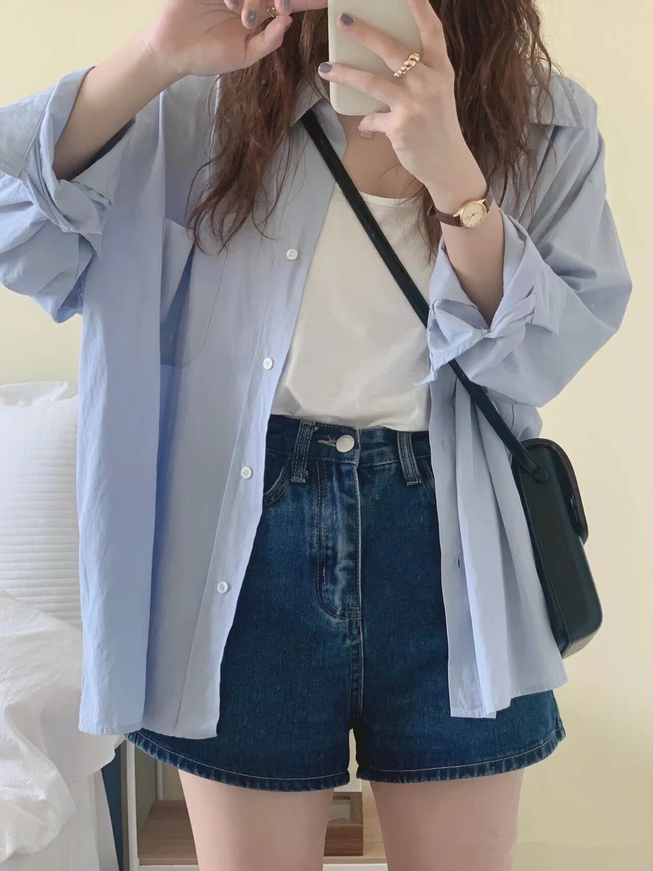 カジュアルシャツ シャツ ワントーン 無地 ルーズ 長袖 トップス カジュアル シンプル 韓国ファッション S-XL 2color