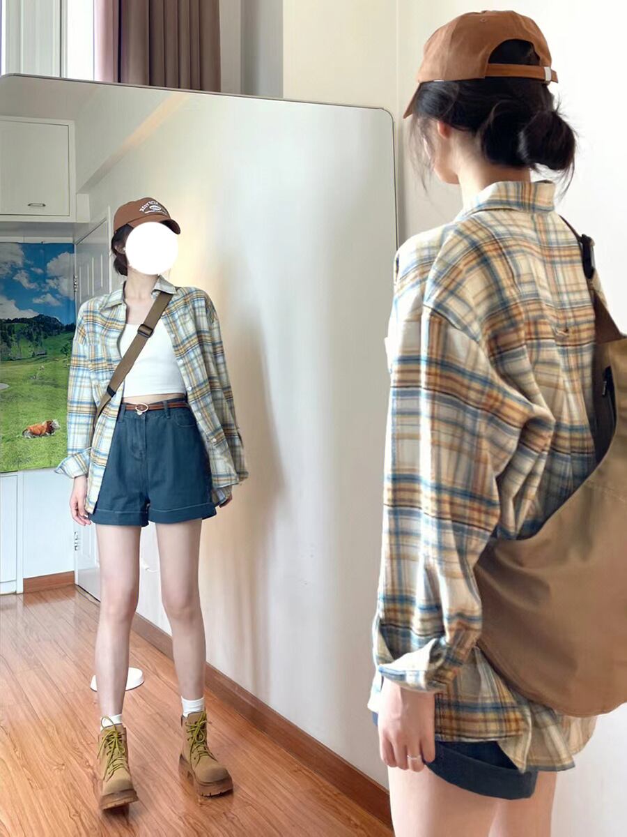 チェックシャツ シャツ チェック柄 長袖 トップス カジュアル シンプル レトロ 韓国ファッション S-XL