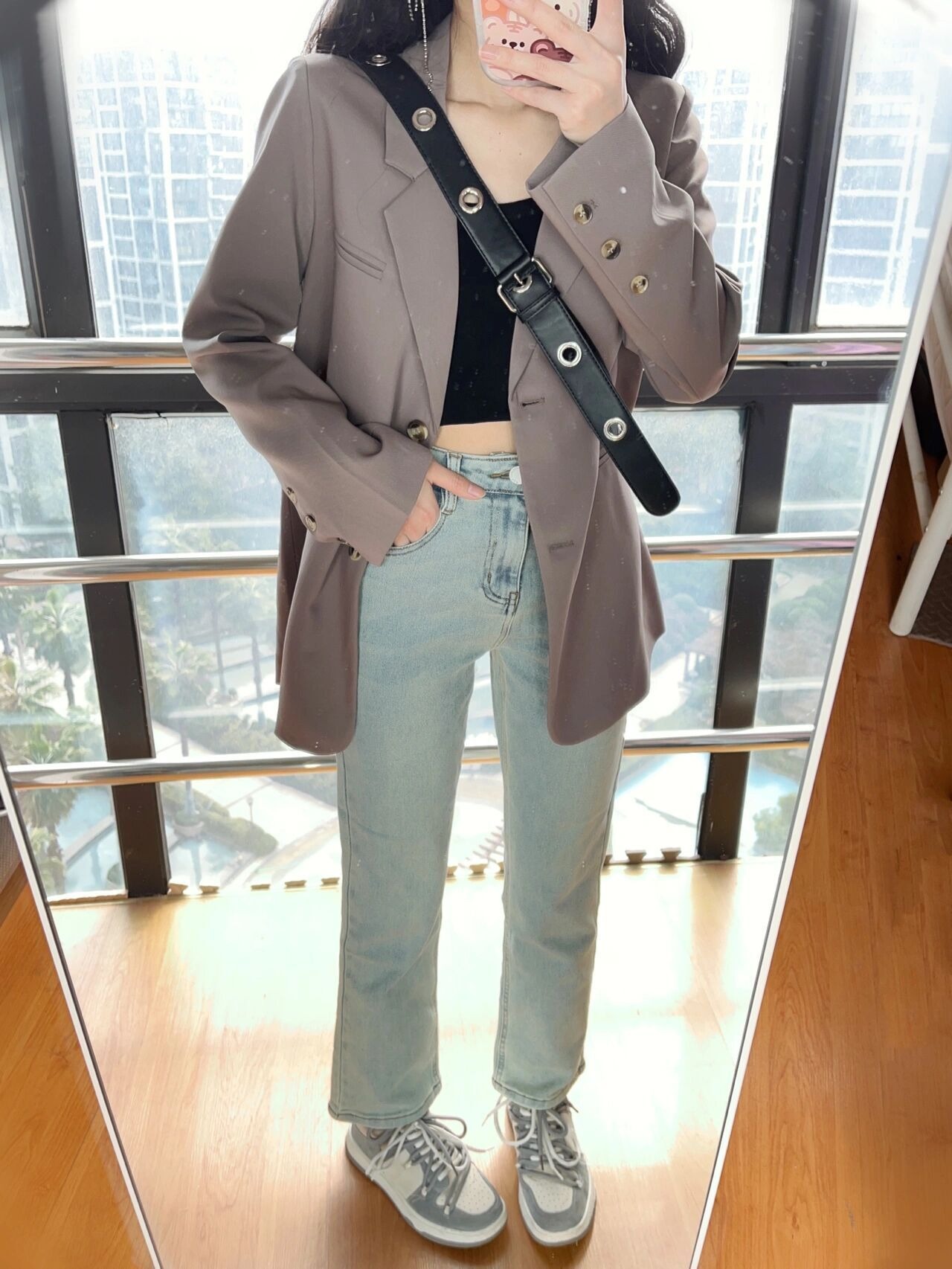 デニムパンツ ボトム ハイウエスト ワントーン 無地 ベーシック シンプル 韓国ファッション S-L