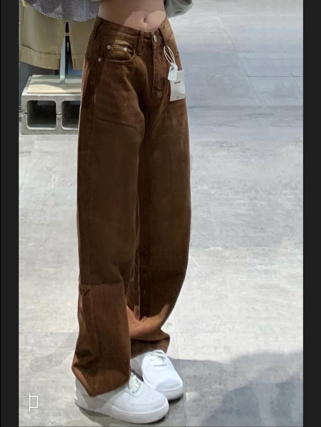 カラーデニム ロングパンツ デニムパンツ ボトム ハイウエスト 着回し カジュアル レトロ 韓国ファッション S-XL