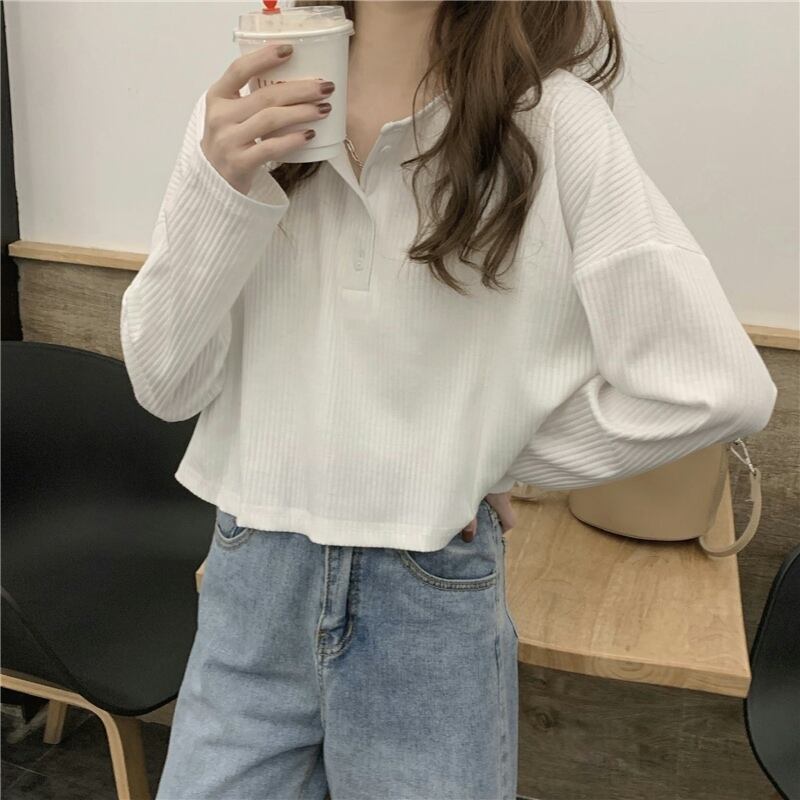 ロングスリーブ T シャツ レディース 秋 韓国ファッション ゆったりトップス 2color