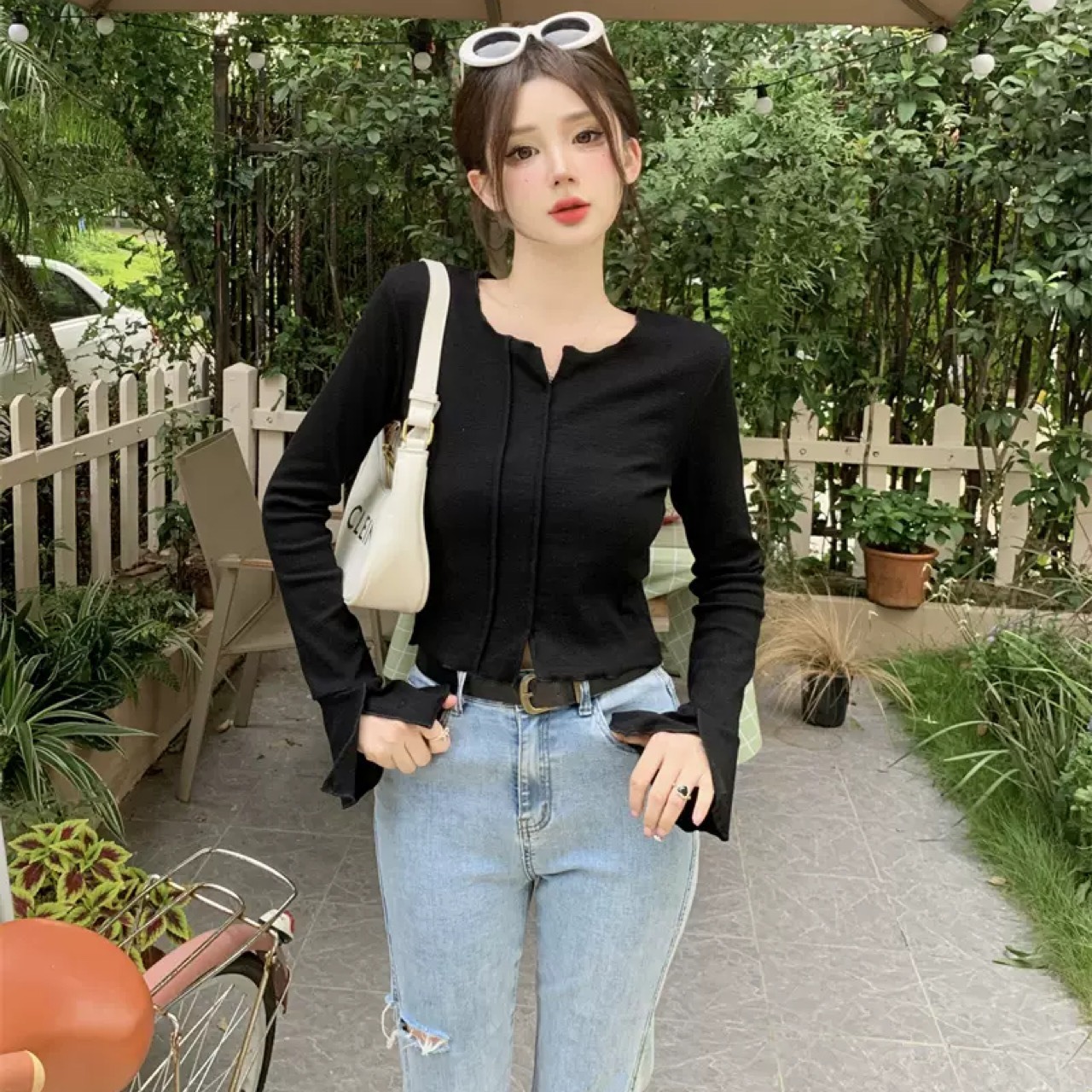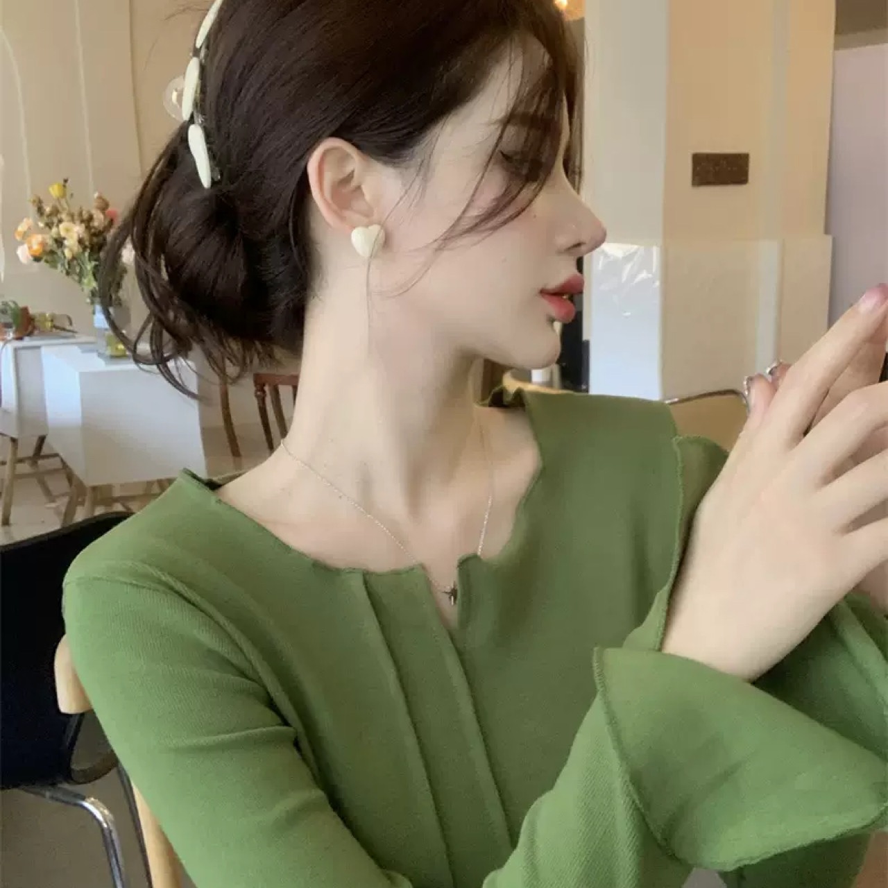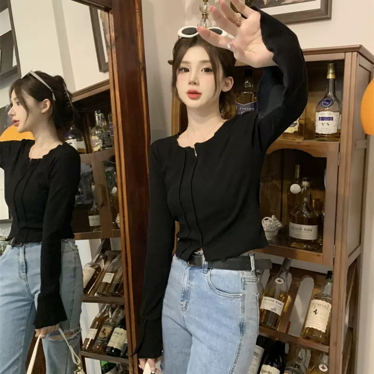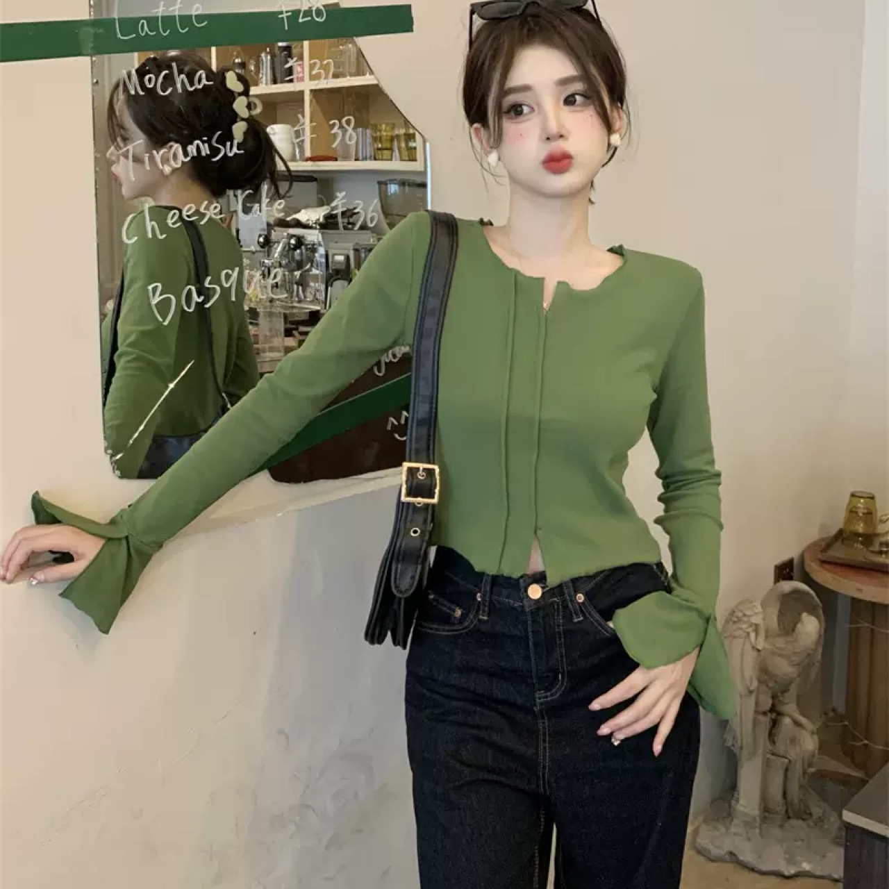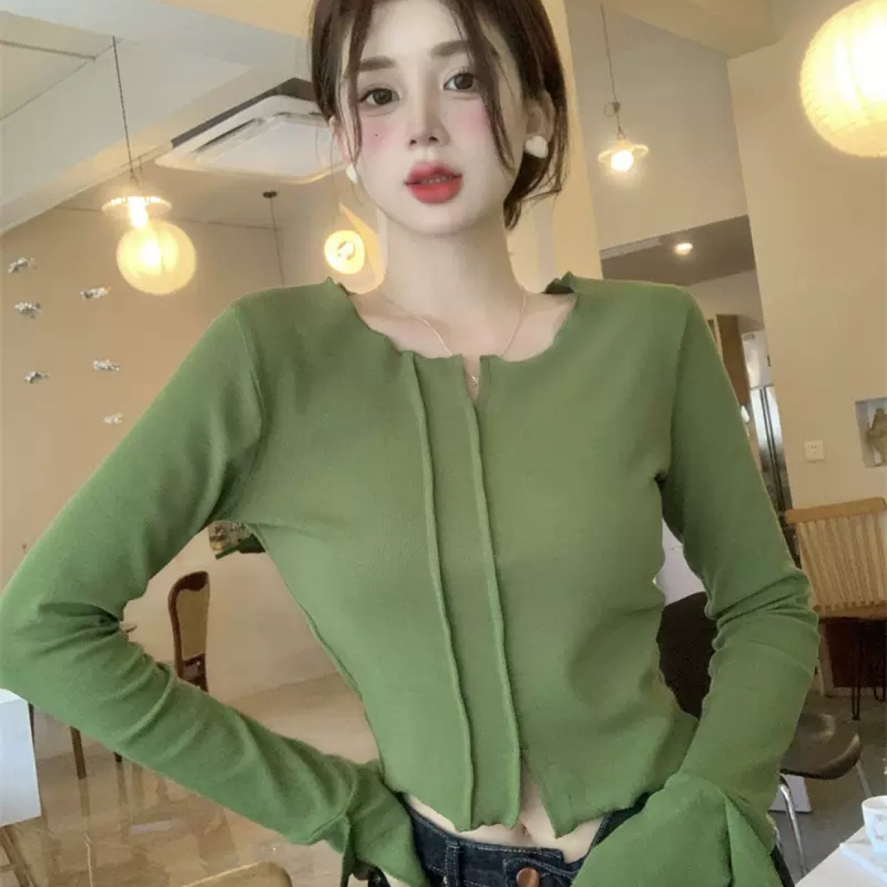 デザインセンス 大人可愛い トップス 早秋 スリム 長袖Tシャツ 韓国ファッション