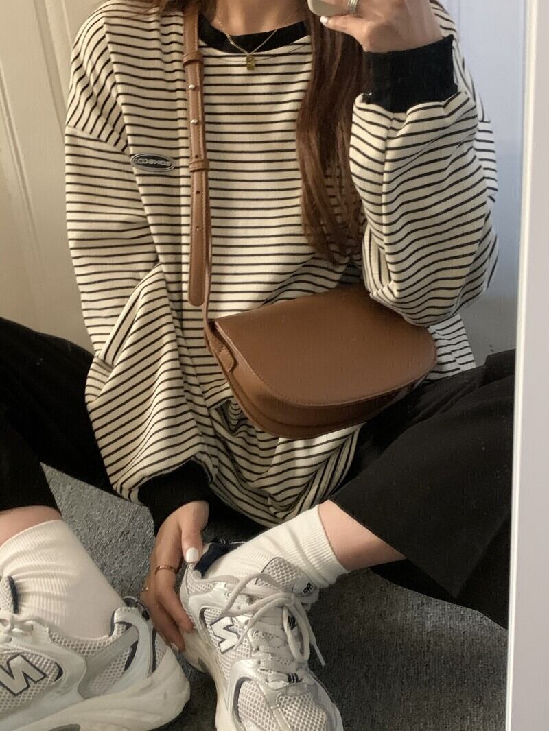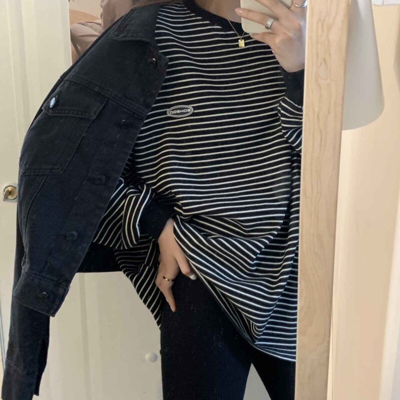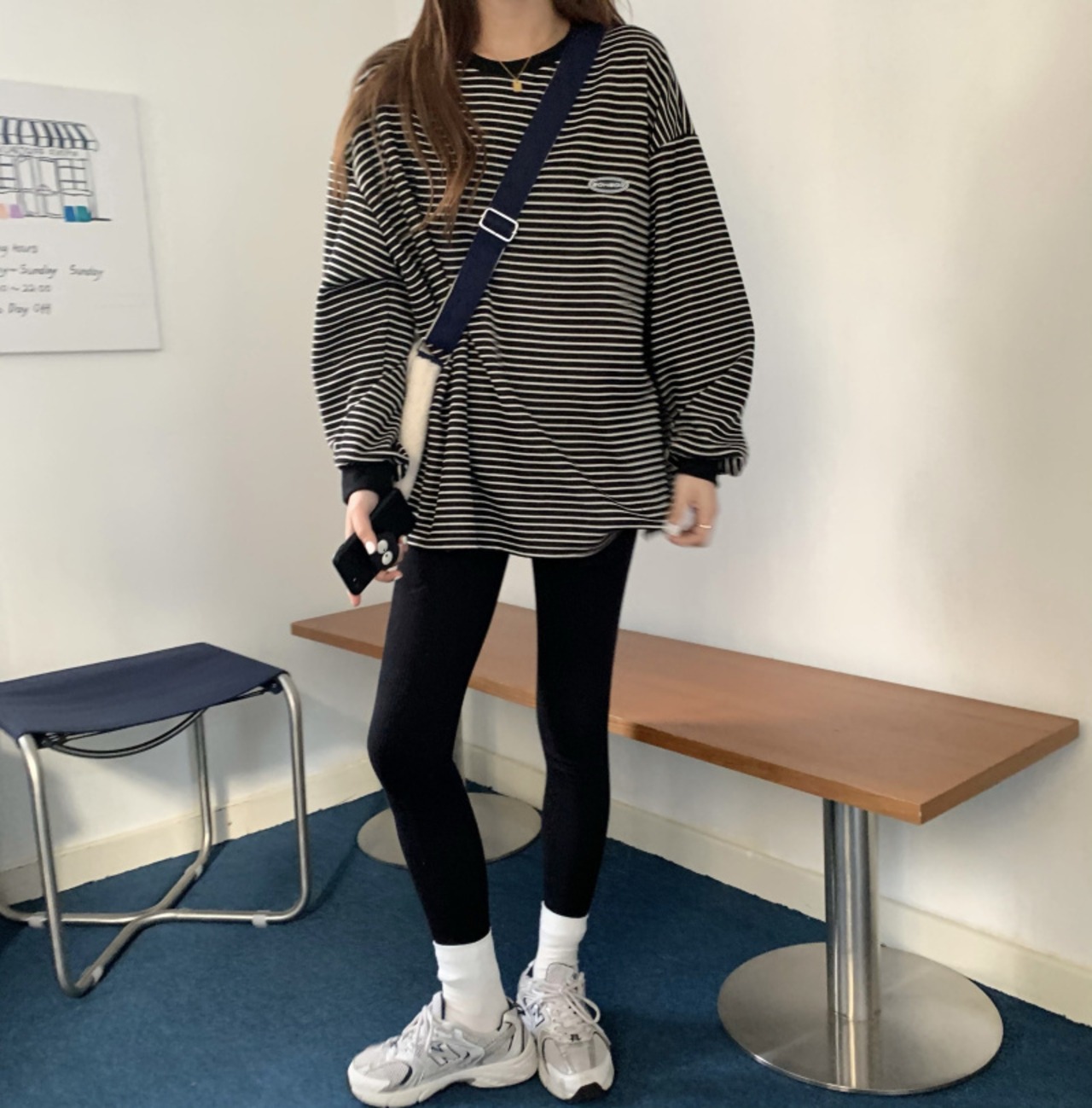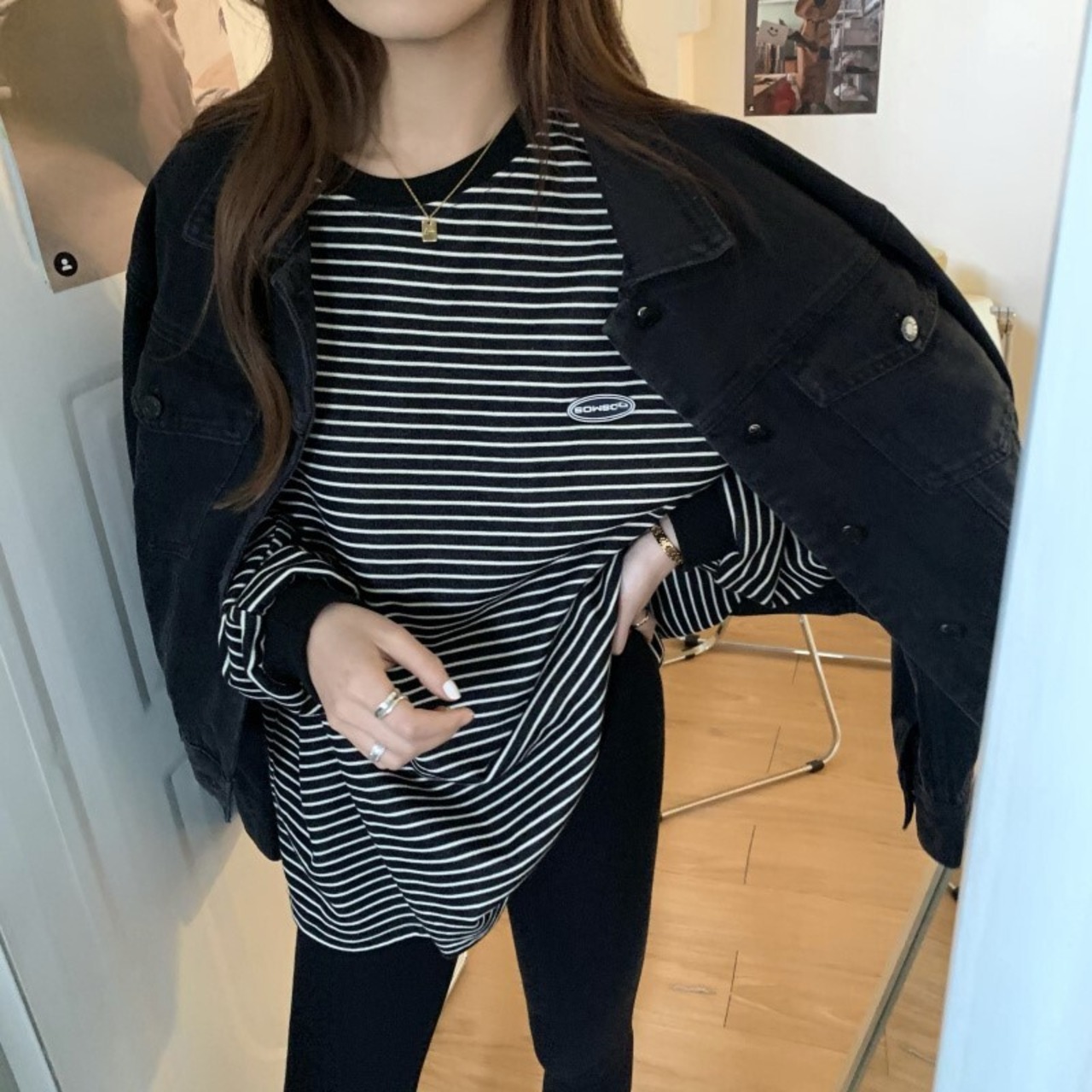 ウィンドストライプ 長袖 ウェスペンスレディース 秋 リラックス ラウンドカラー 韓国ファッション