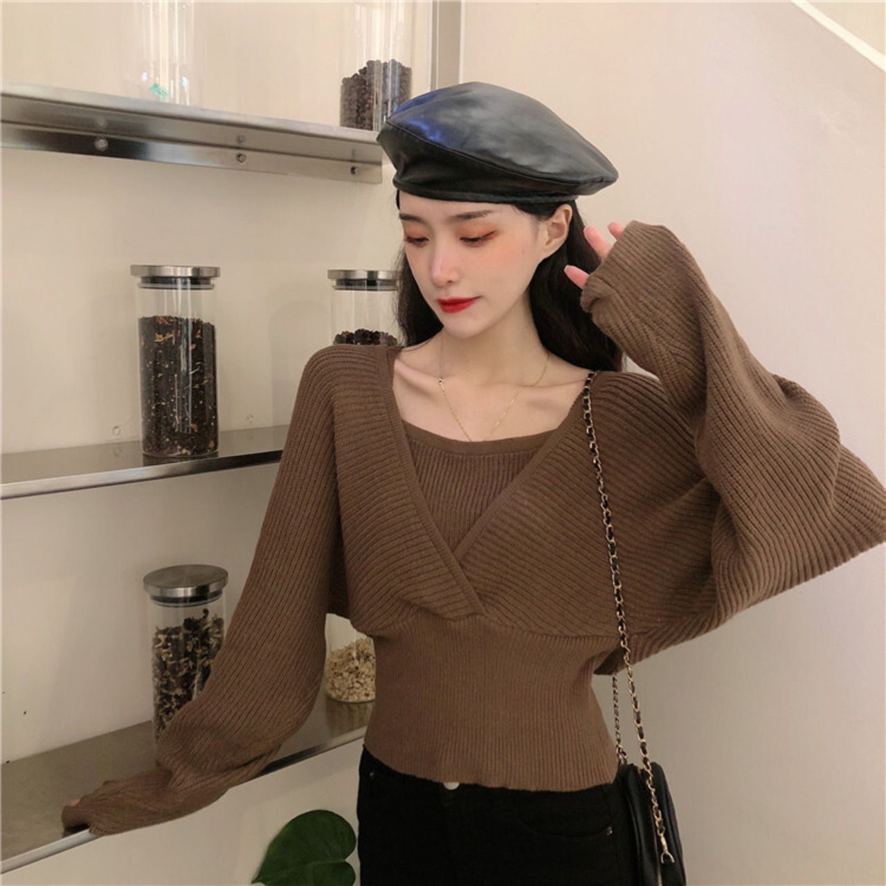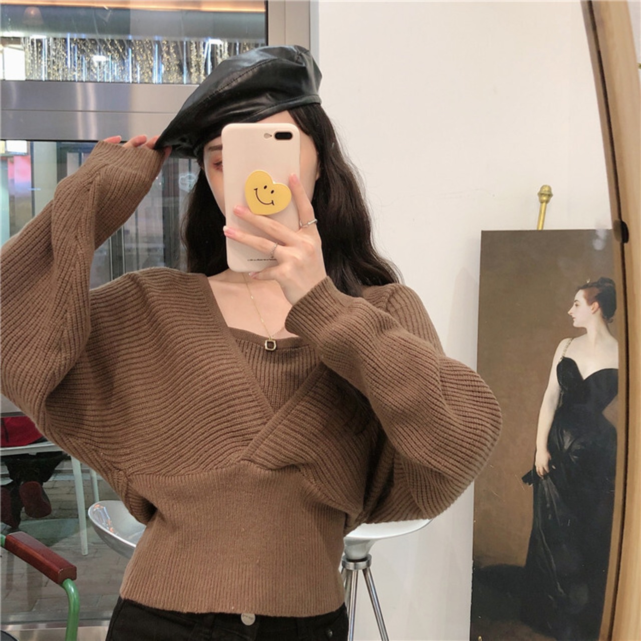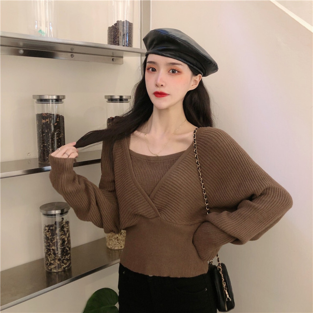 ニットシャツ 秋服 セーター レディース Vネック セクシー 韓国ファッション 大人可愛い フェミニン 3color