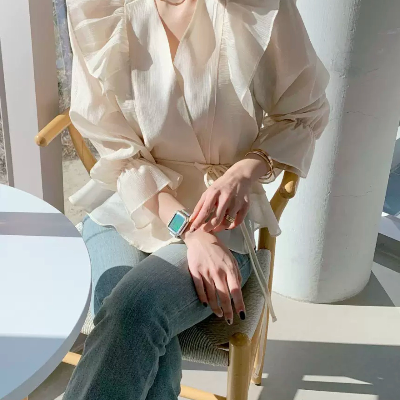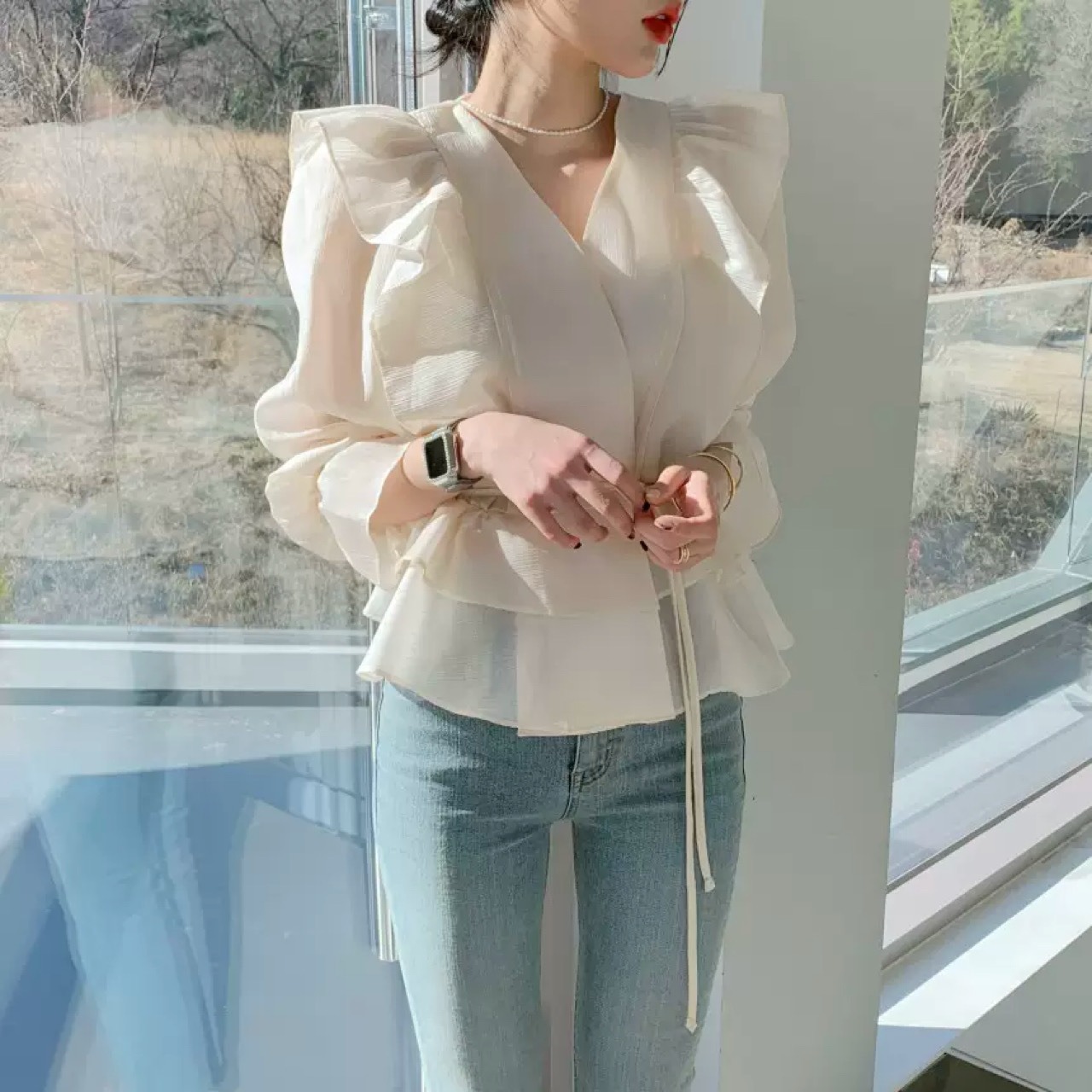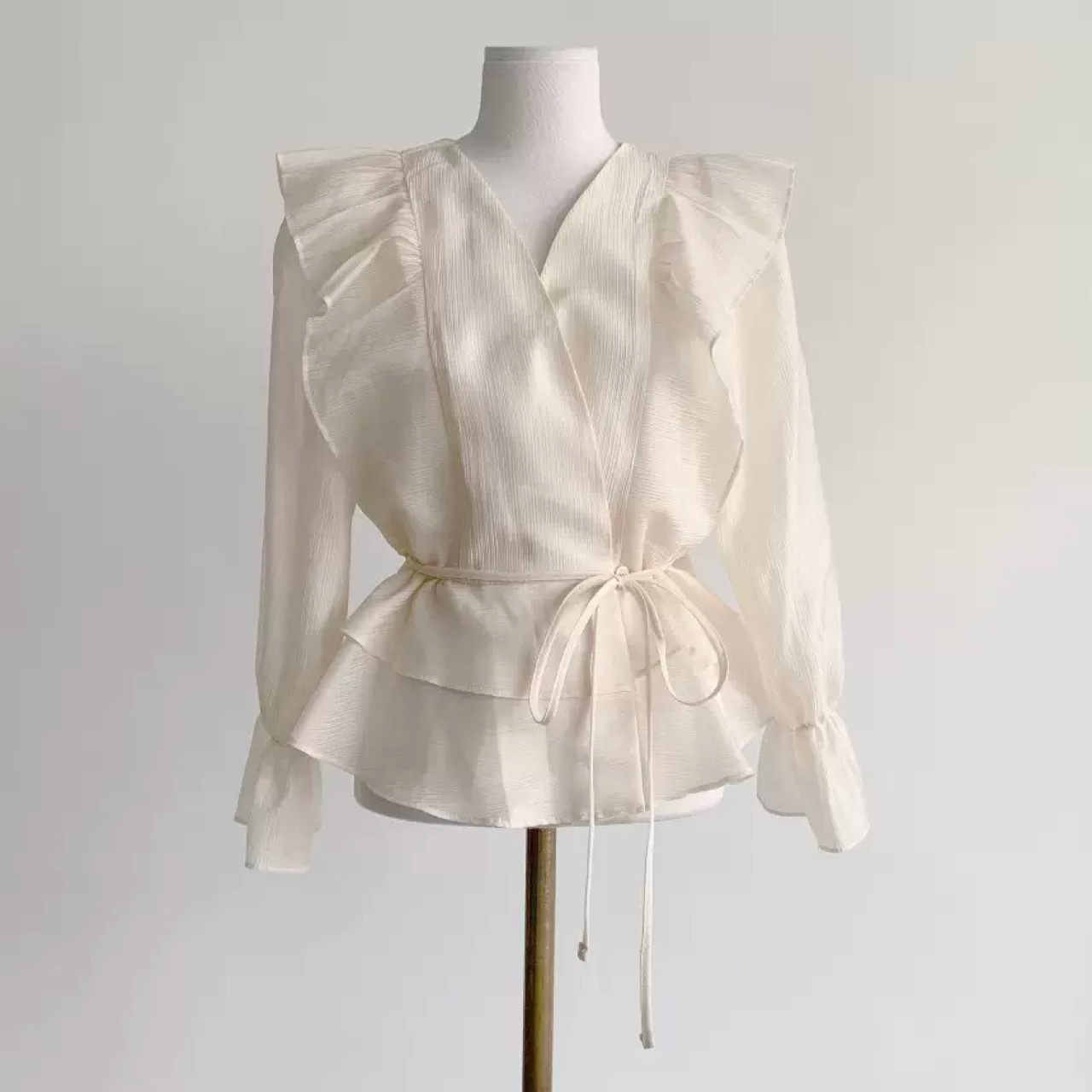 フリル トップス レディース フェミニン 長袖 韓国ファッション 大人可愛い オシャレ