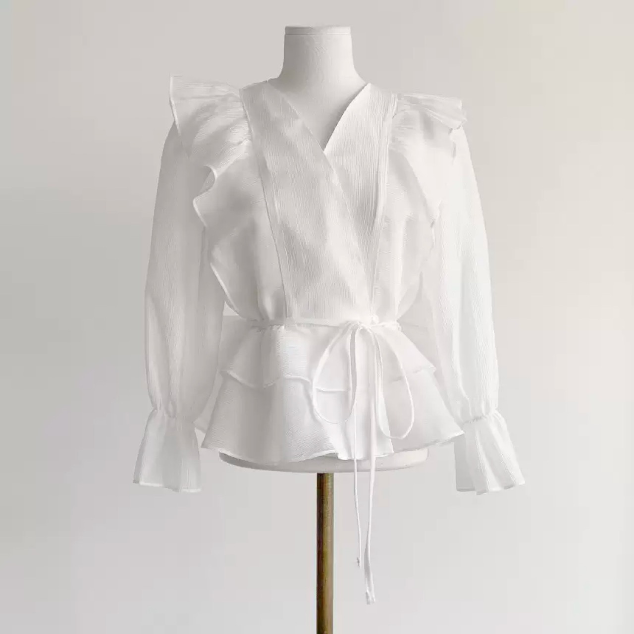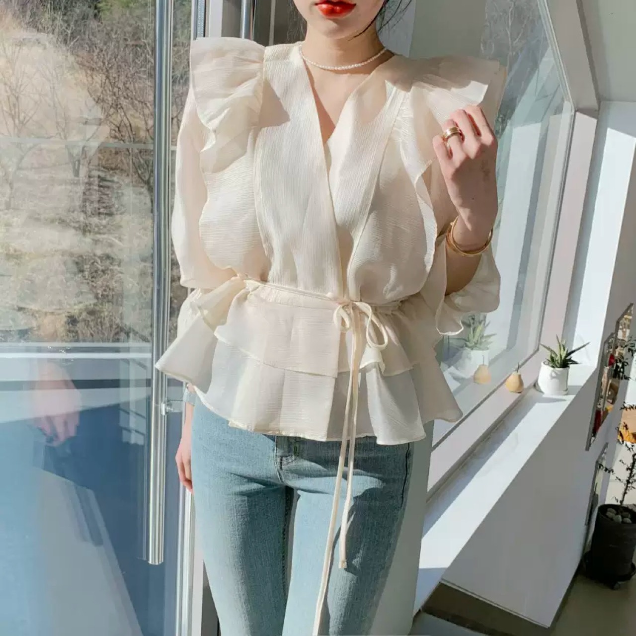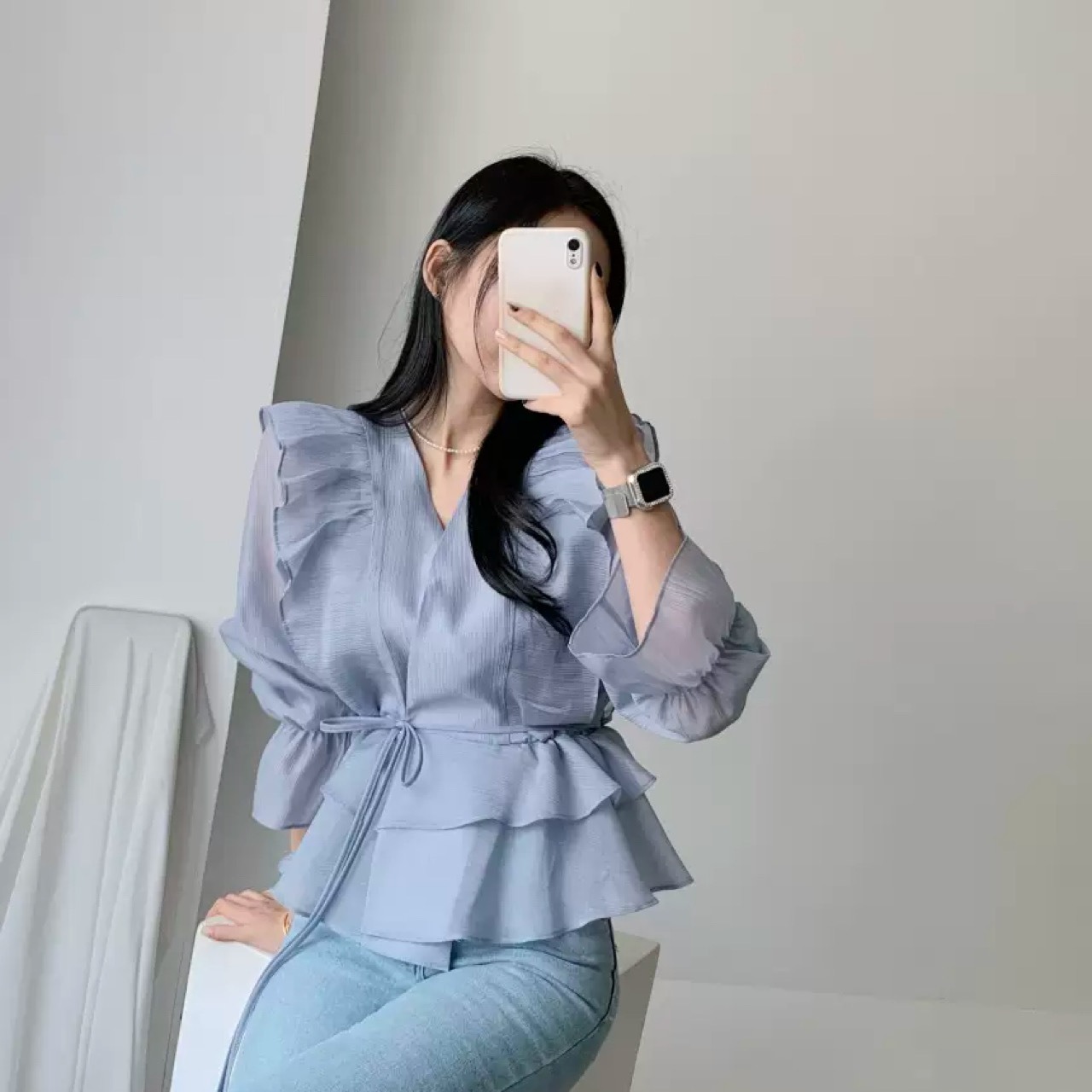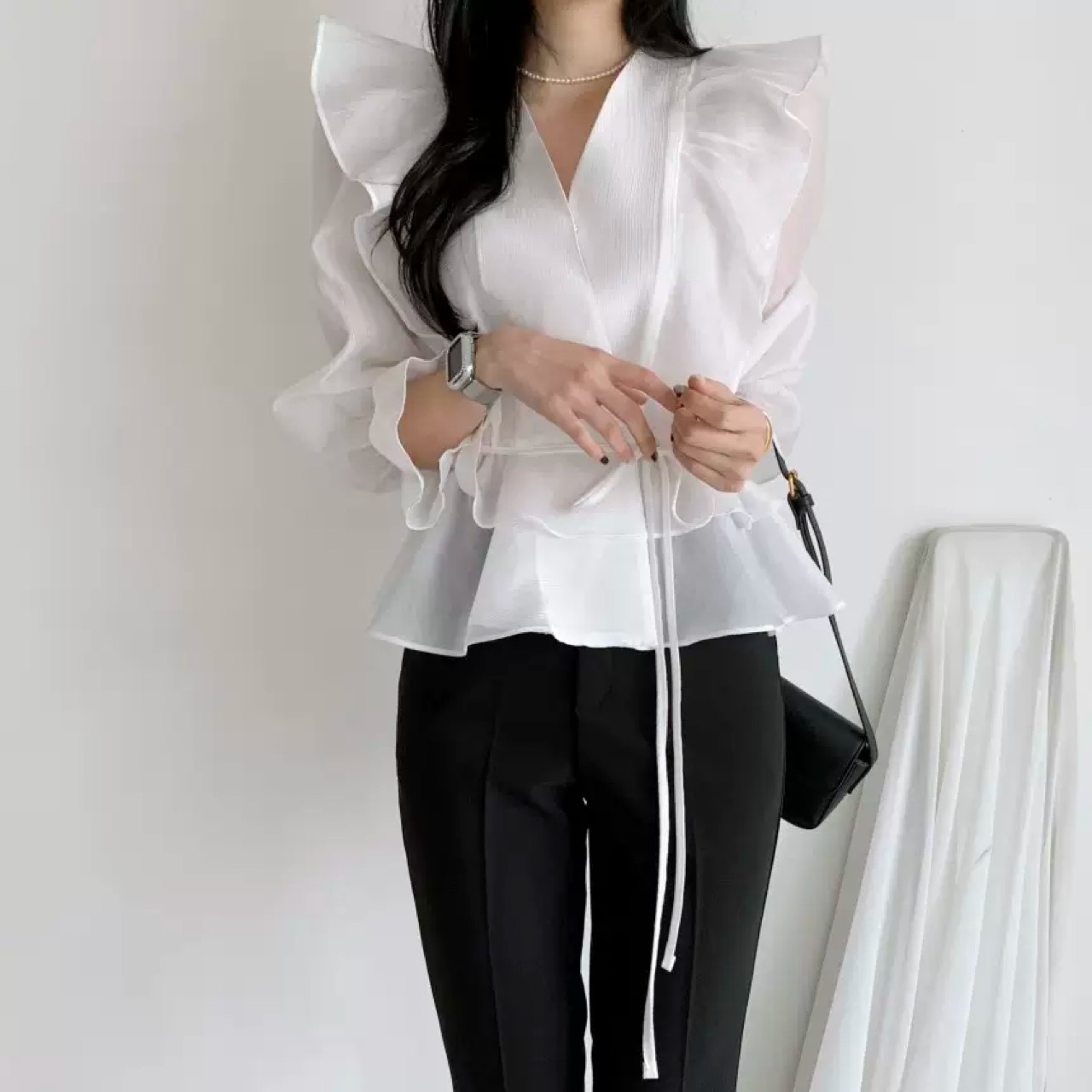 フリル トップス レディース フェミニン 長袖 韓国ファッション 大人可愛い オシャレ
