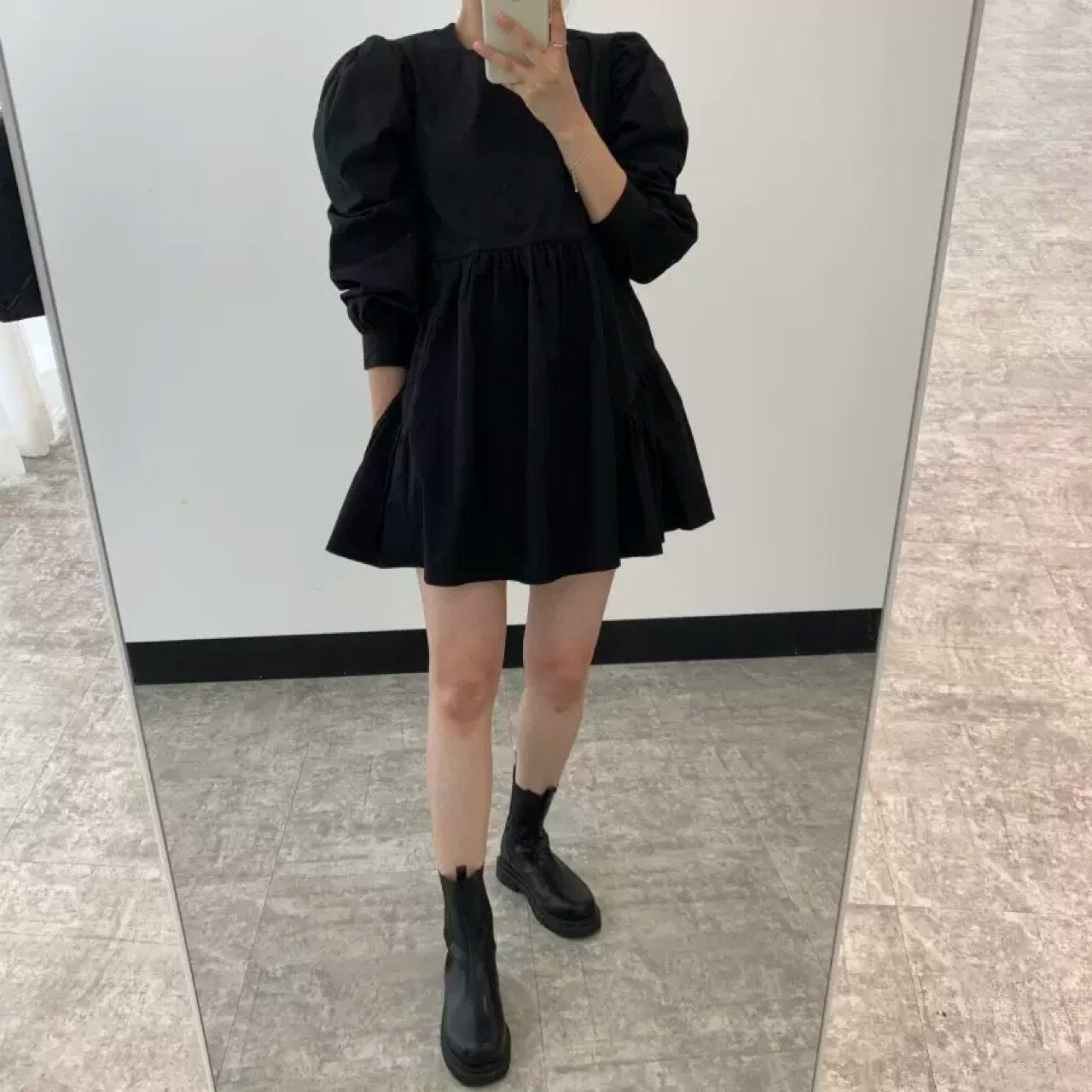 ミニワンピース レディース 長袖 韓国ファッション フェミニン ゆったり 大人可愛い カジュアル シンプル 2color